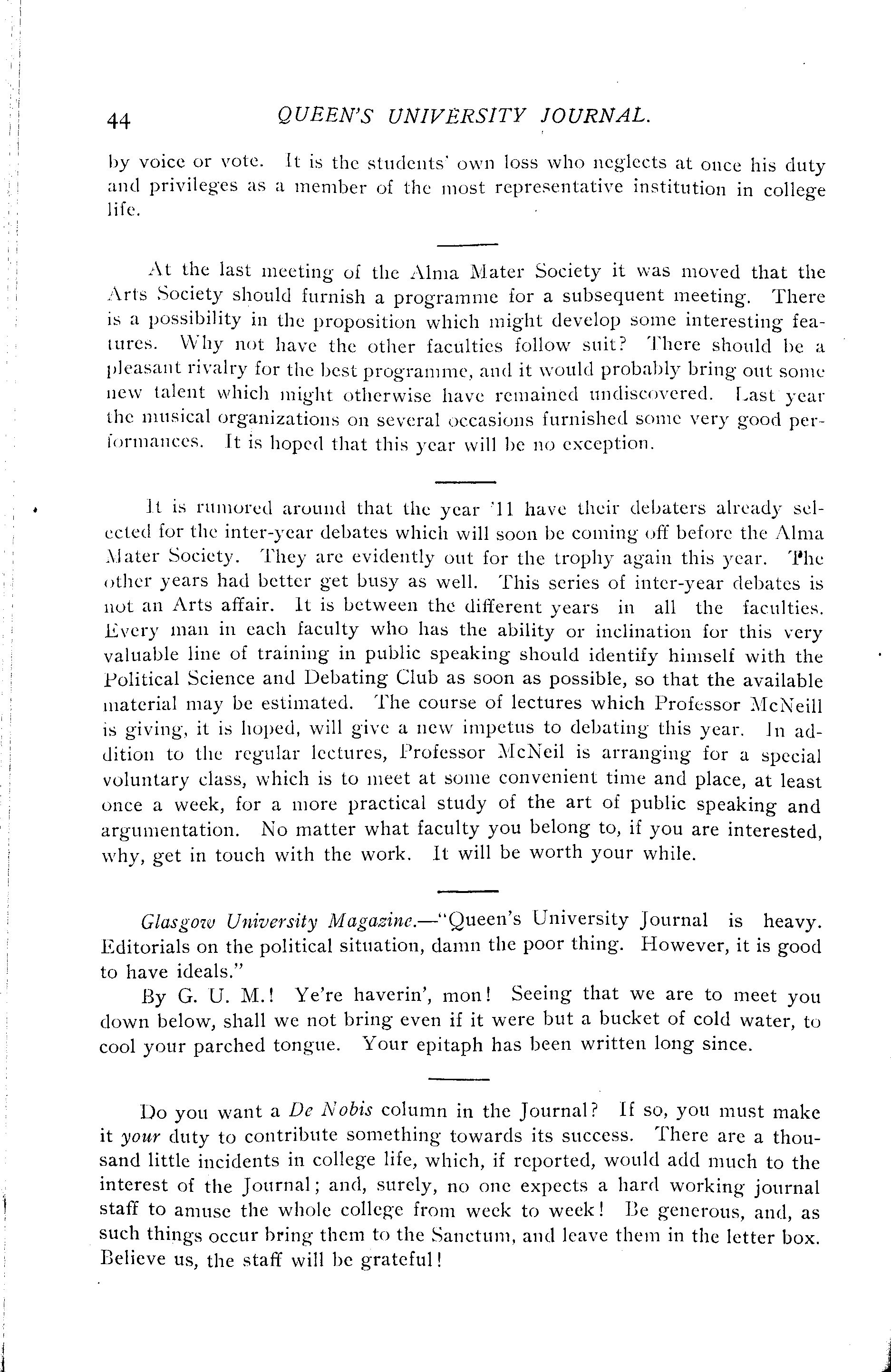 Queen's University journal : Vol. 37, no. 2 (Oct. 27, 1909)