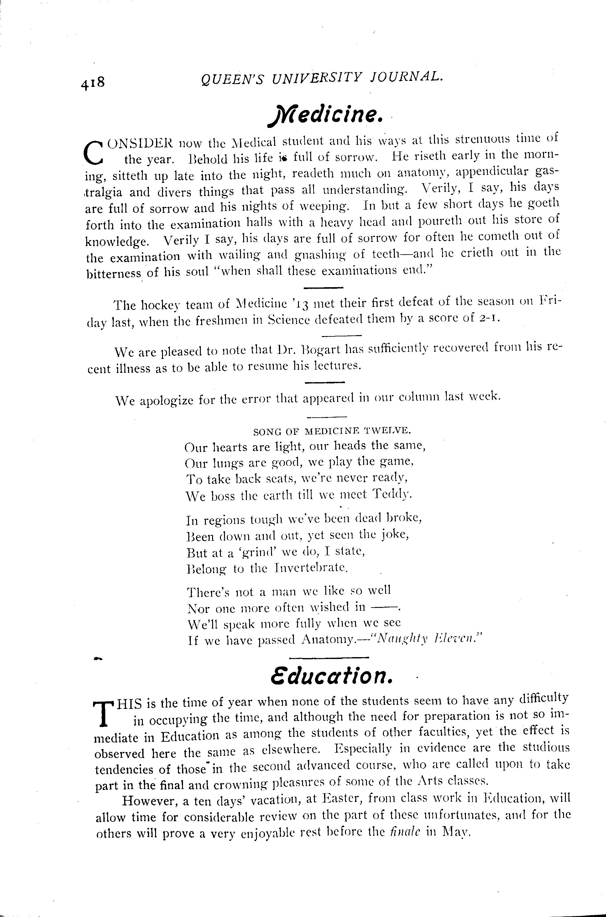 Queen's University journal : Vol. 37, no. 20 (Mar. 23, 1910)