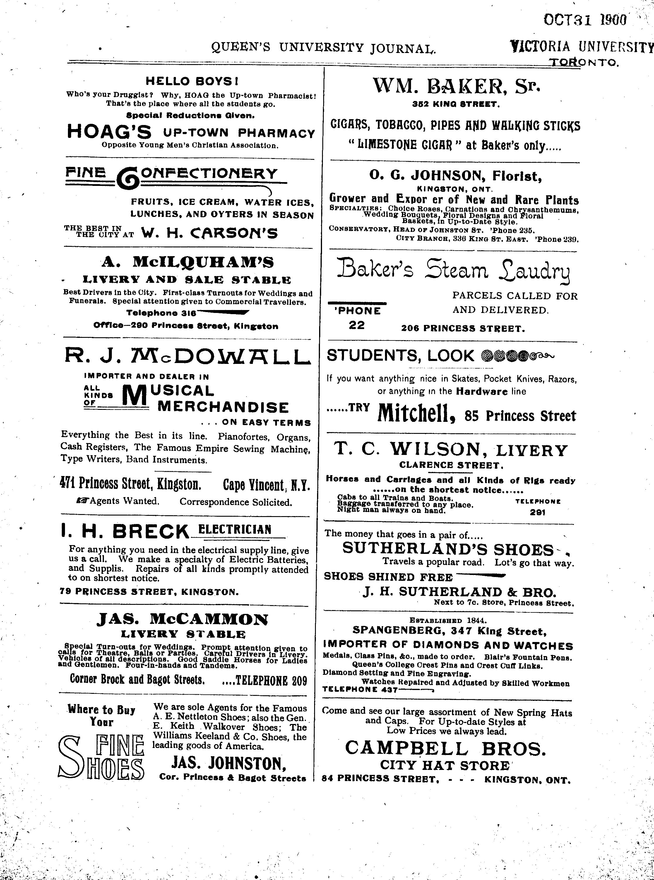 Queen's University journal : Vol. 28, no. 1 (Oct. 26, 1900)
