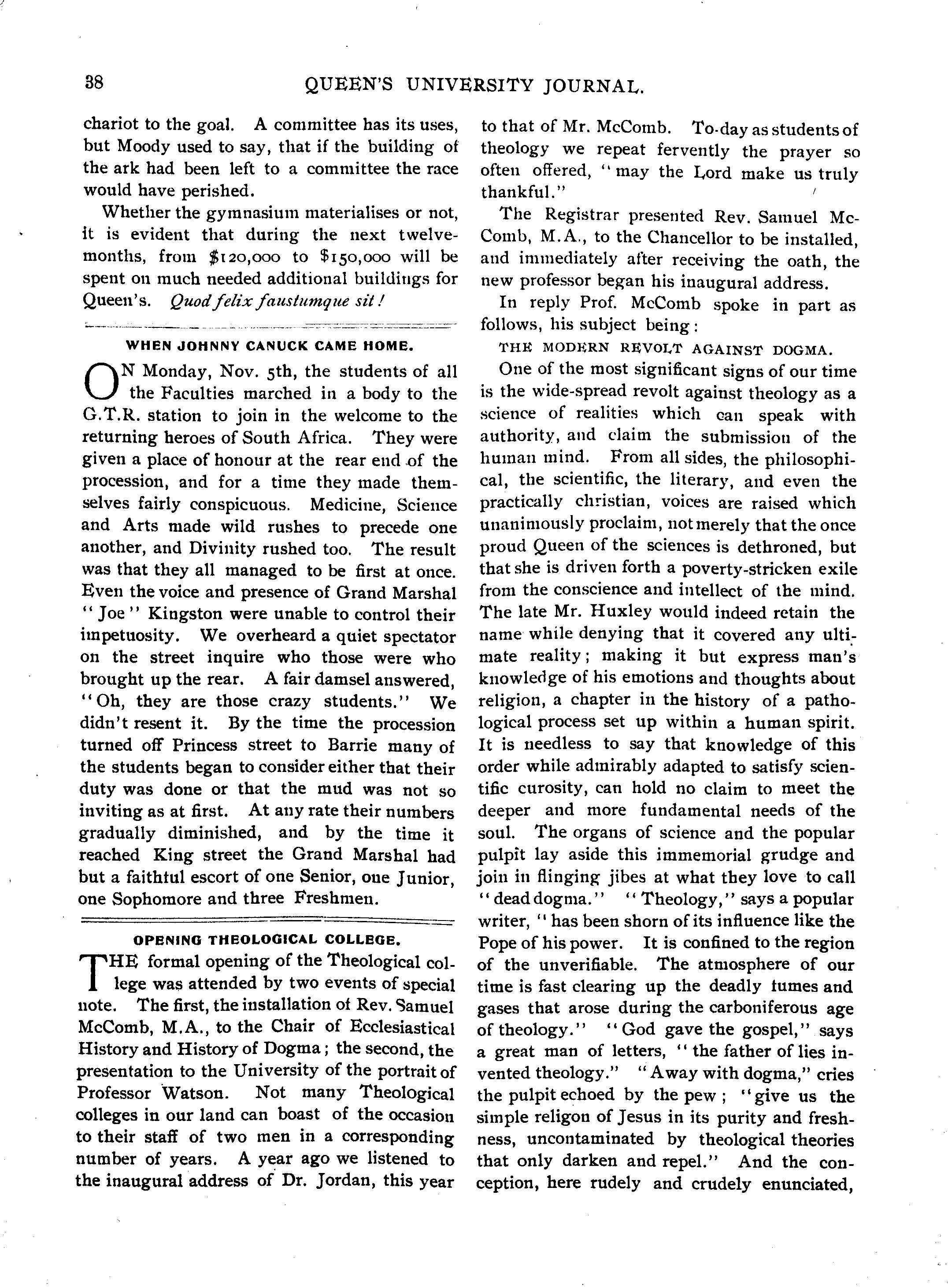 Queen's University journal : Vol. 28, no. 2 (Nov. 9, 1900)