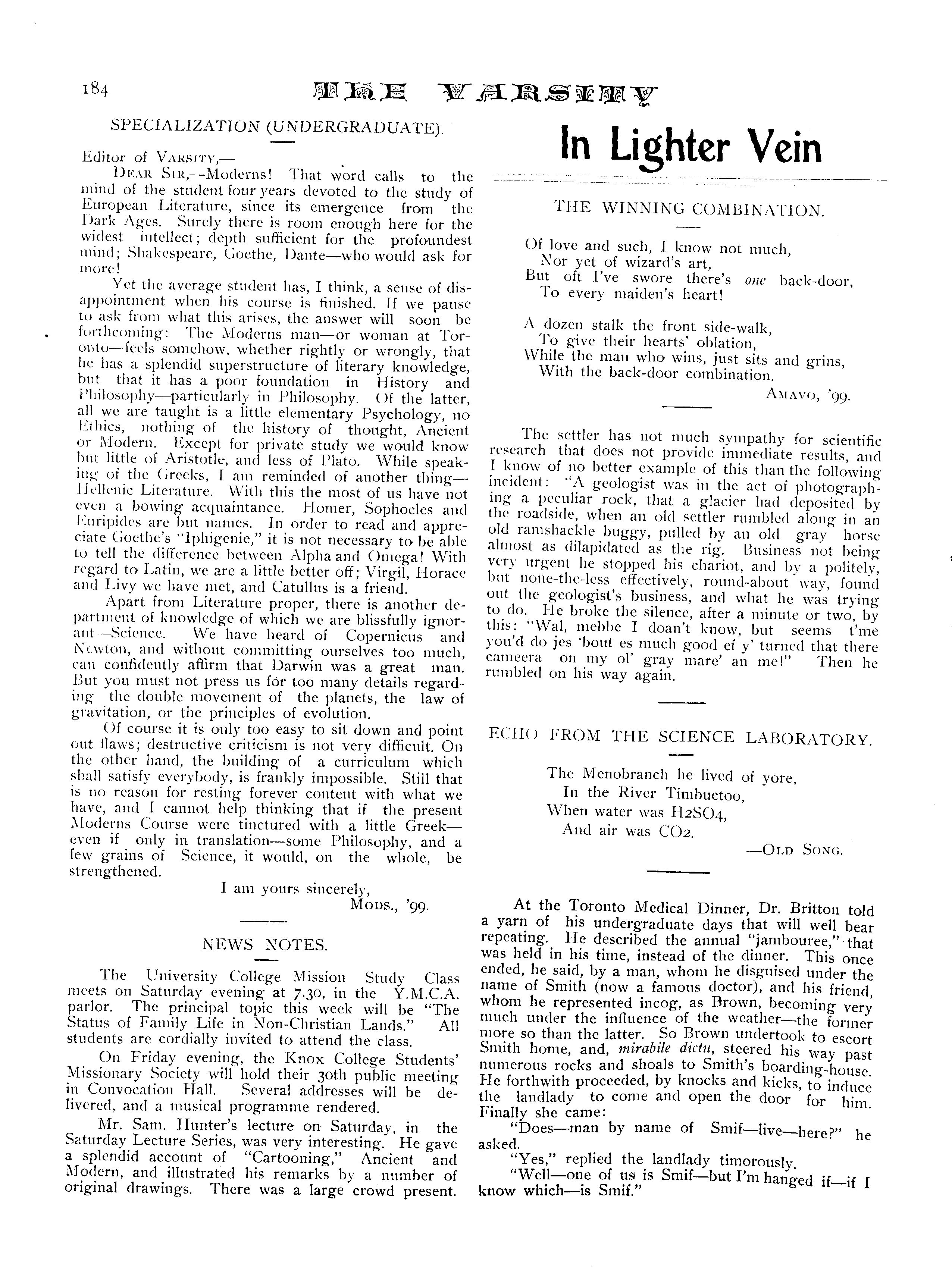 - The varsity : Vol. 18, no. 14 (Feb. 1, 1899)