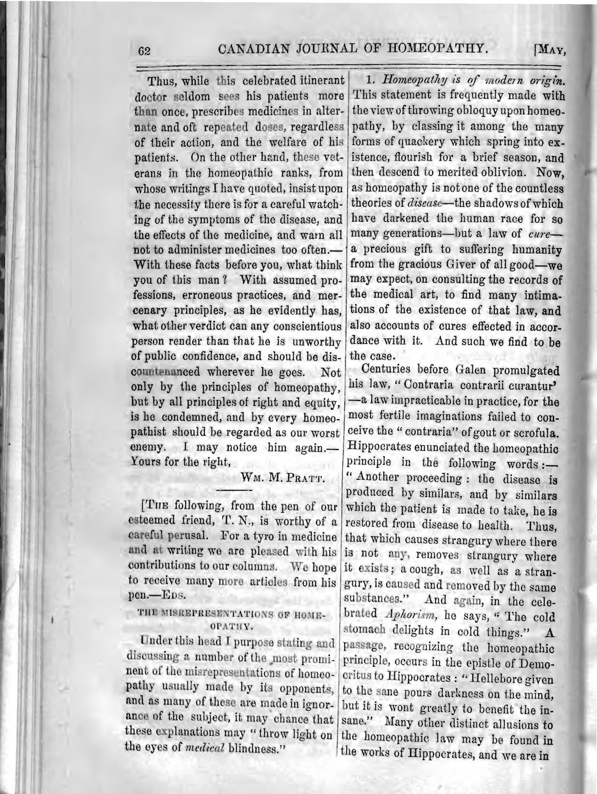 Canadian journal of homeopathy : Vol. I, No. 5 (May 1856)