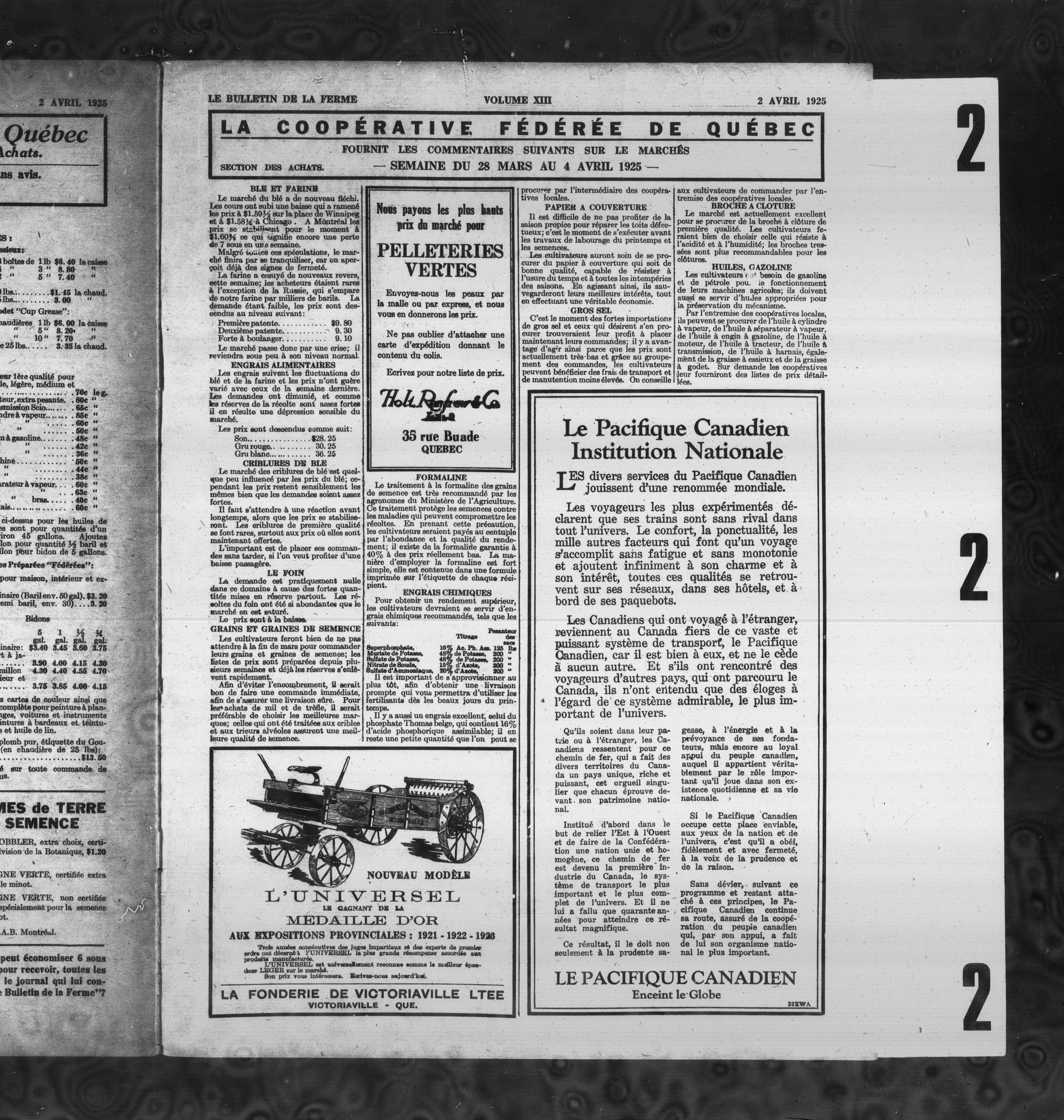 - Le Bulletin de la ferme : Volume XIII, Numéro 14 (2 avril 1925)