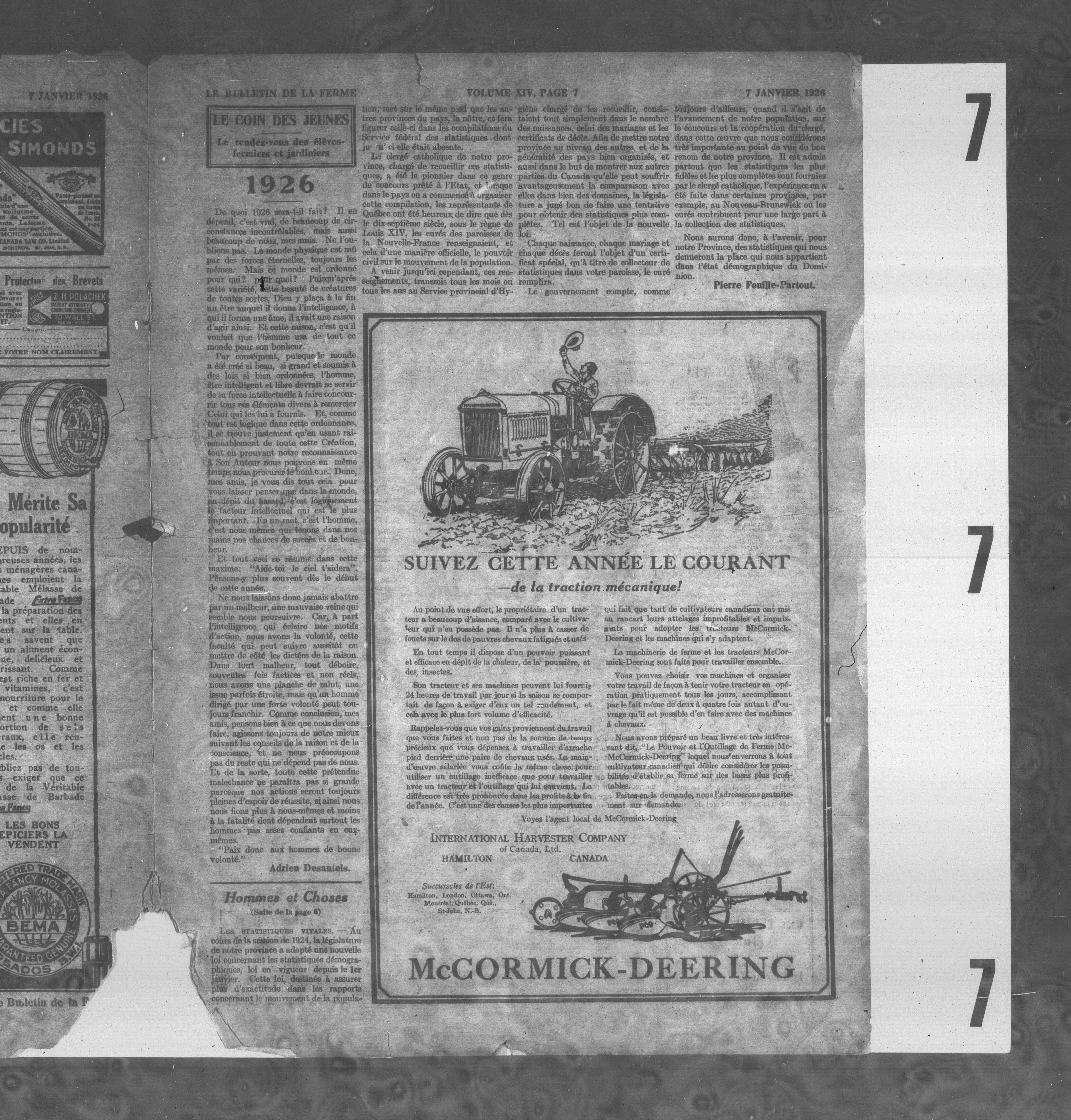 Le Bulletin de la ferme : Le Bulletin de la ferme : Volume XIV, Numéro 1 (7 janvier 1926)