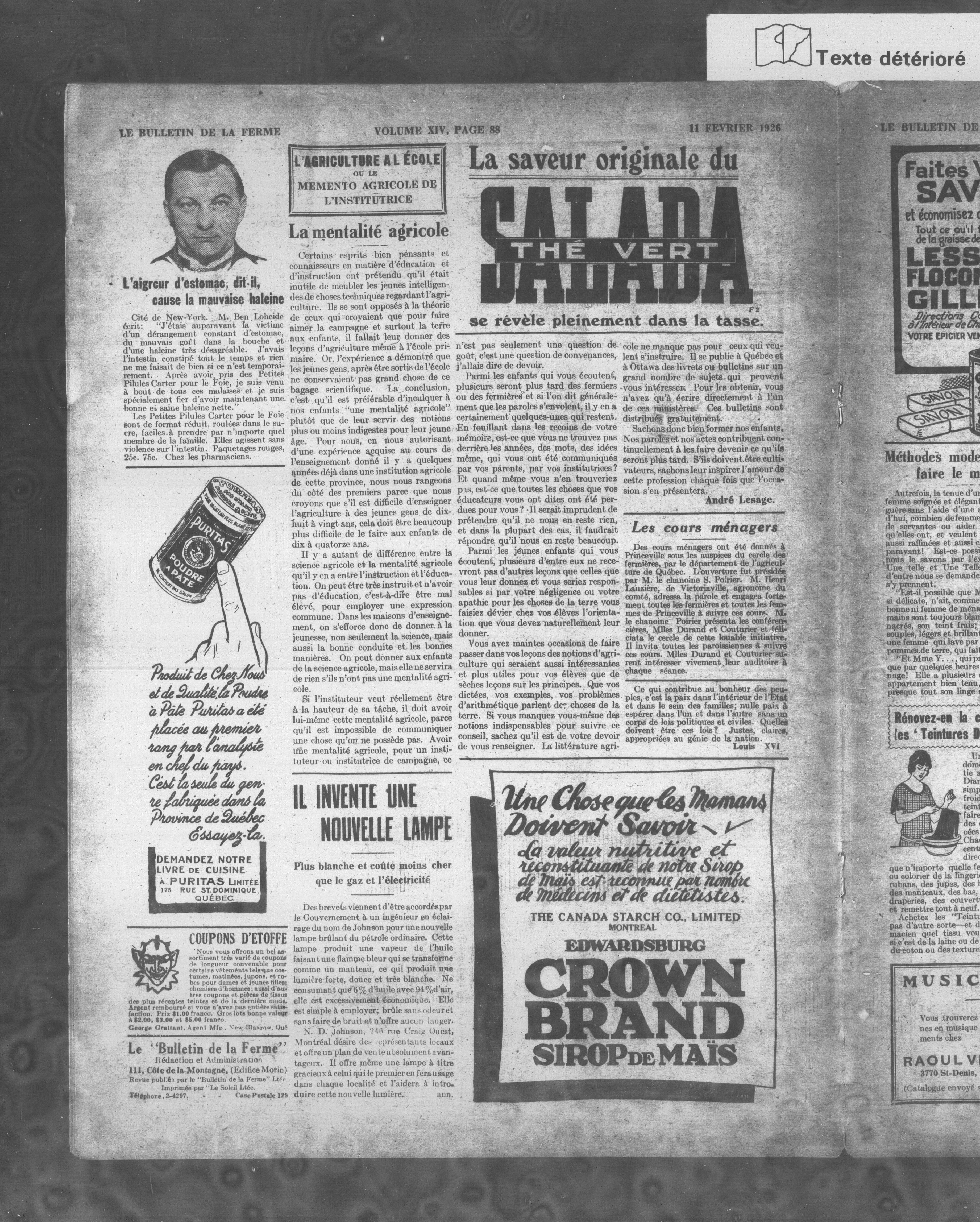 Le Bulletin de la ferme : Le Bulletin de la ferme : Volume XIV, Numéro 6 (11 février 1926)