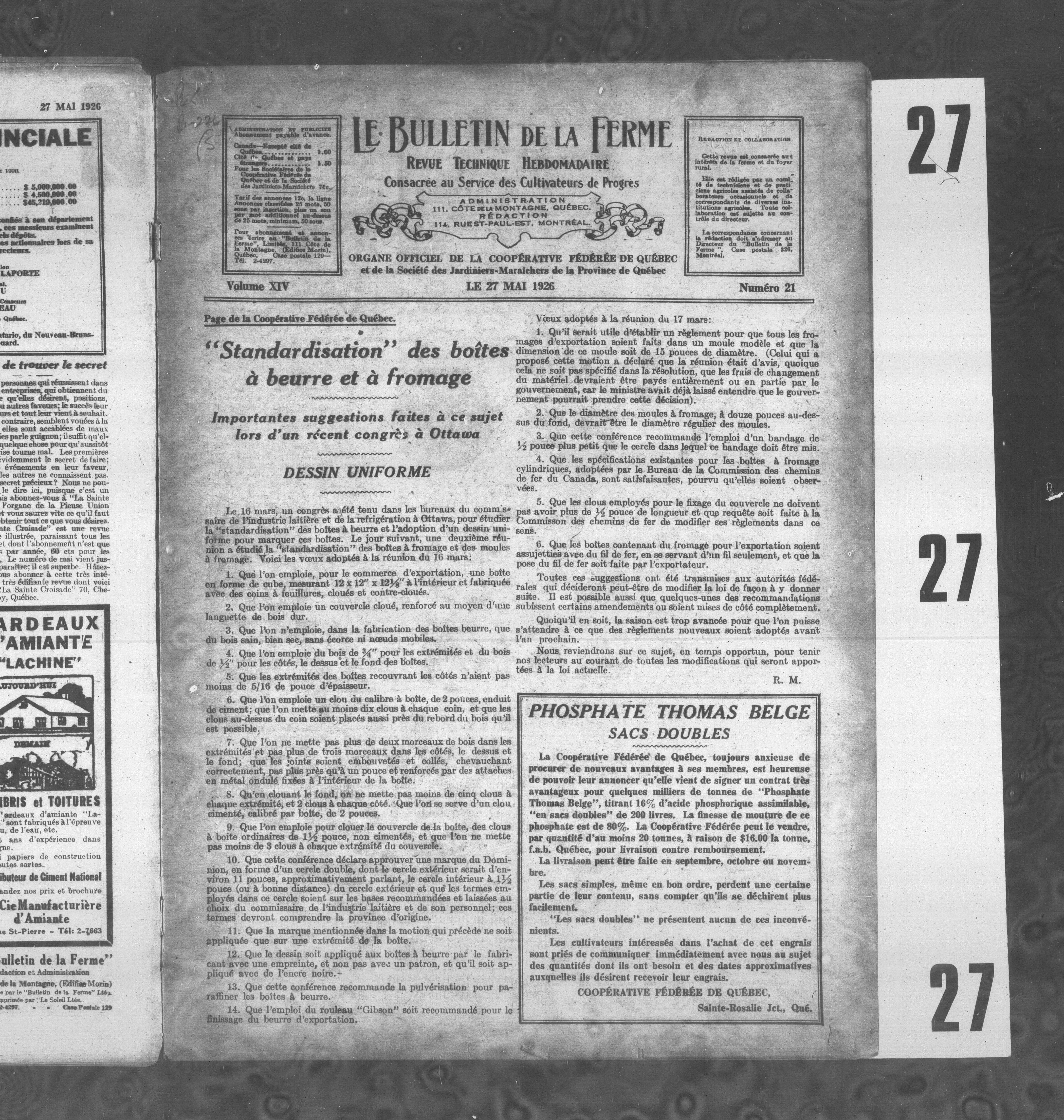 Le Bulletin de la ferme : Volume XIV, Numéro 21 (27 mai 1926)
