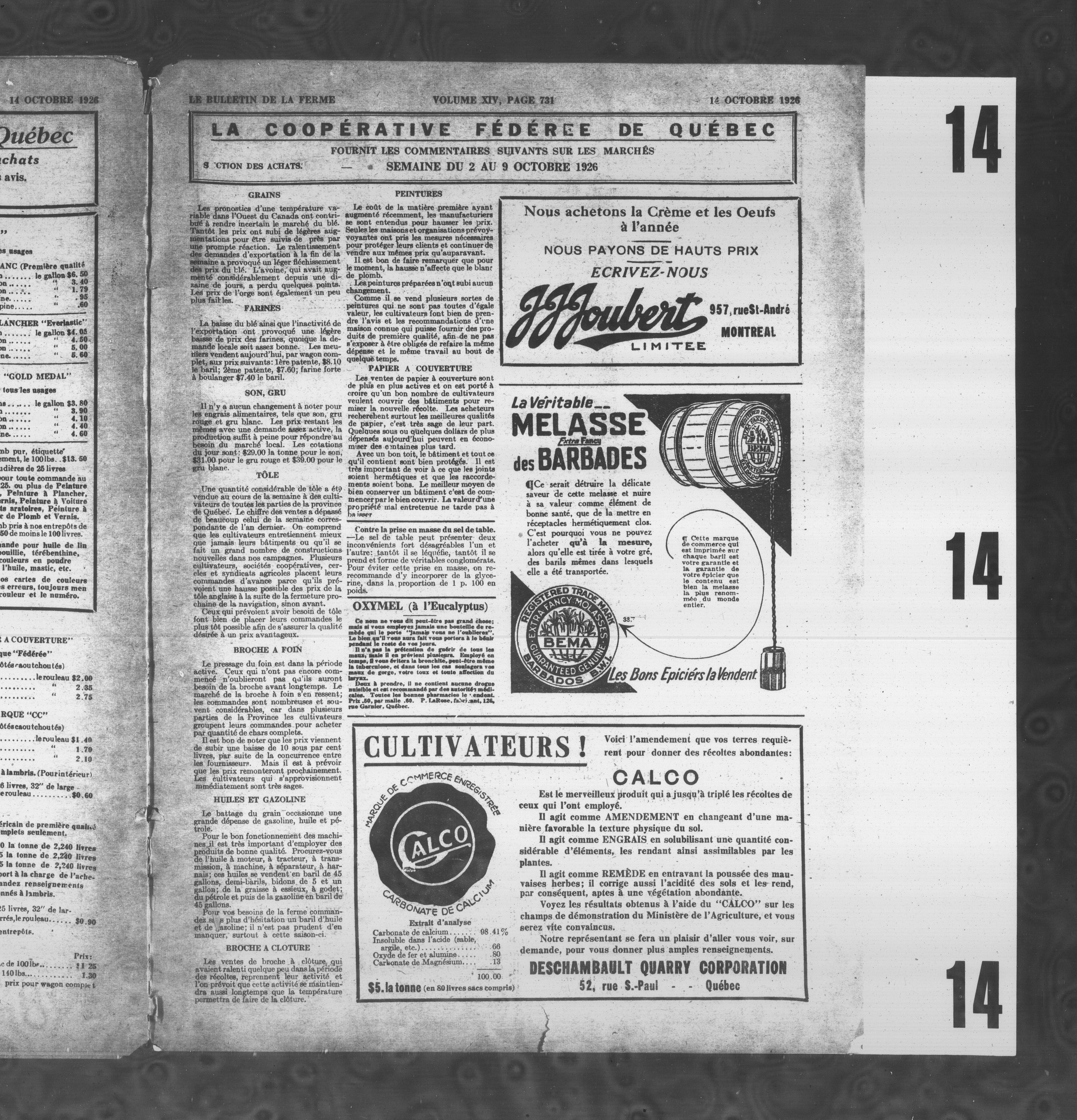 Le Bulletin de la ferme : Le Bulletin de la ferme : Volume XIV, Numéro 41 (14 octobre 1926)