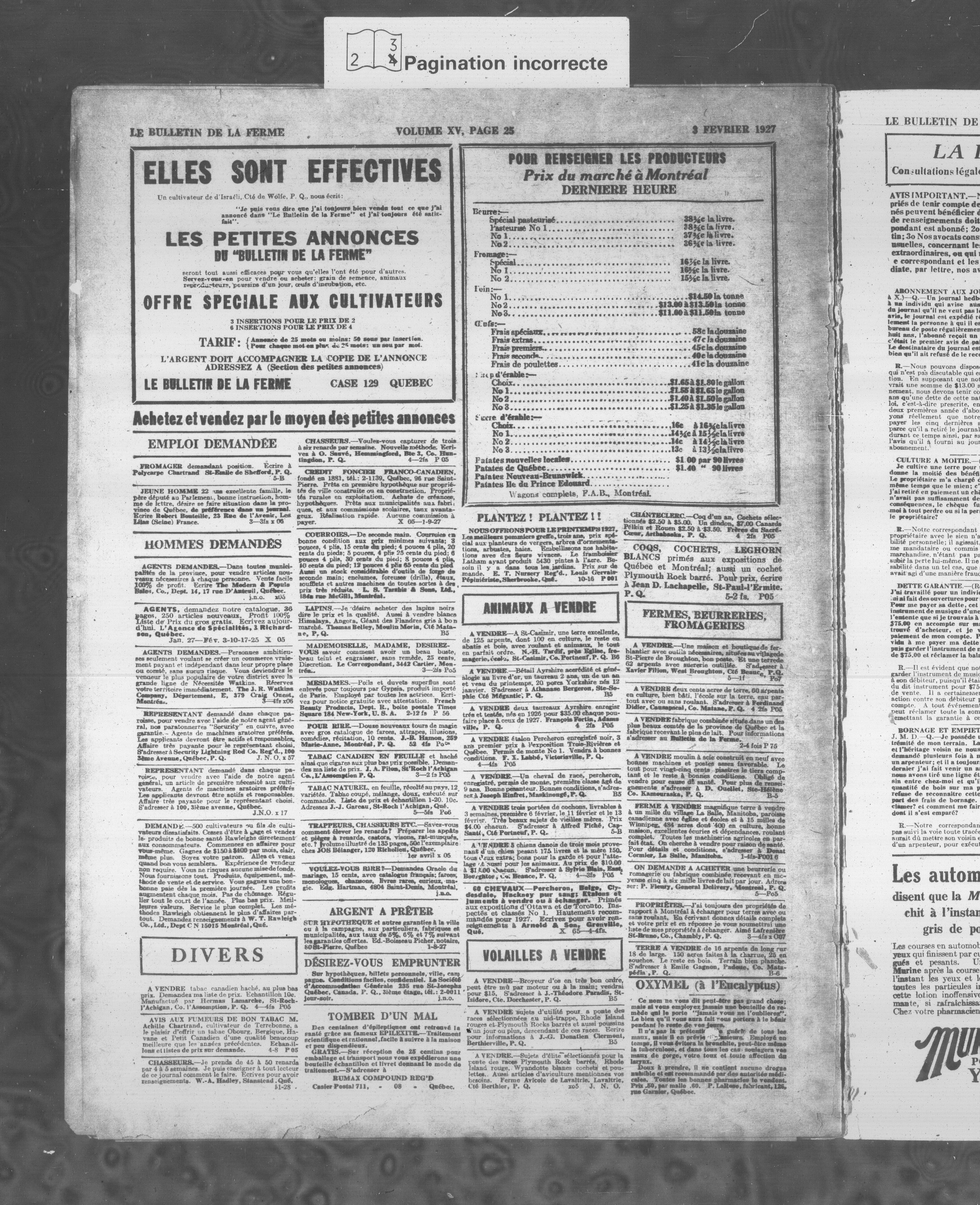 - Le Bulletin de la ferme : Volume XV, Numéro 5 (3 février 1927)
