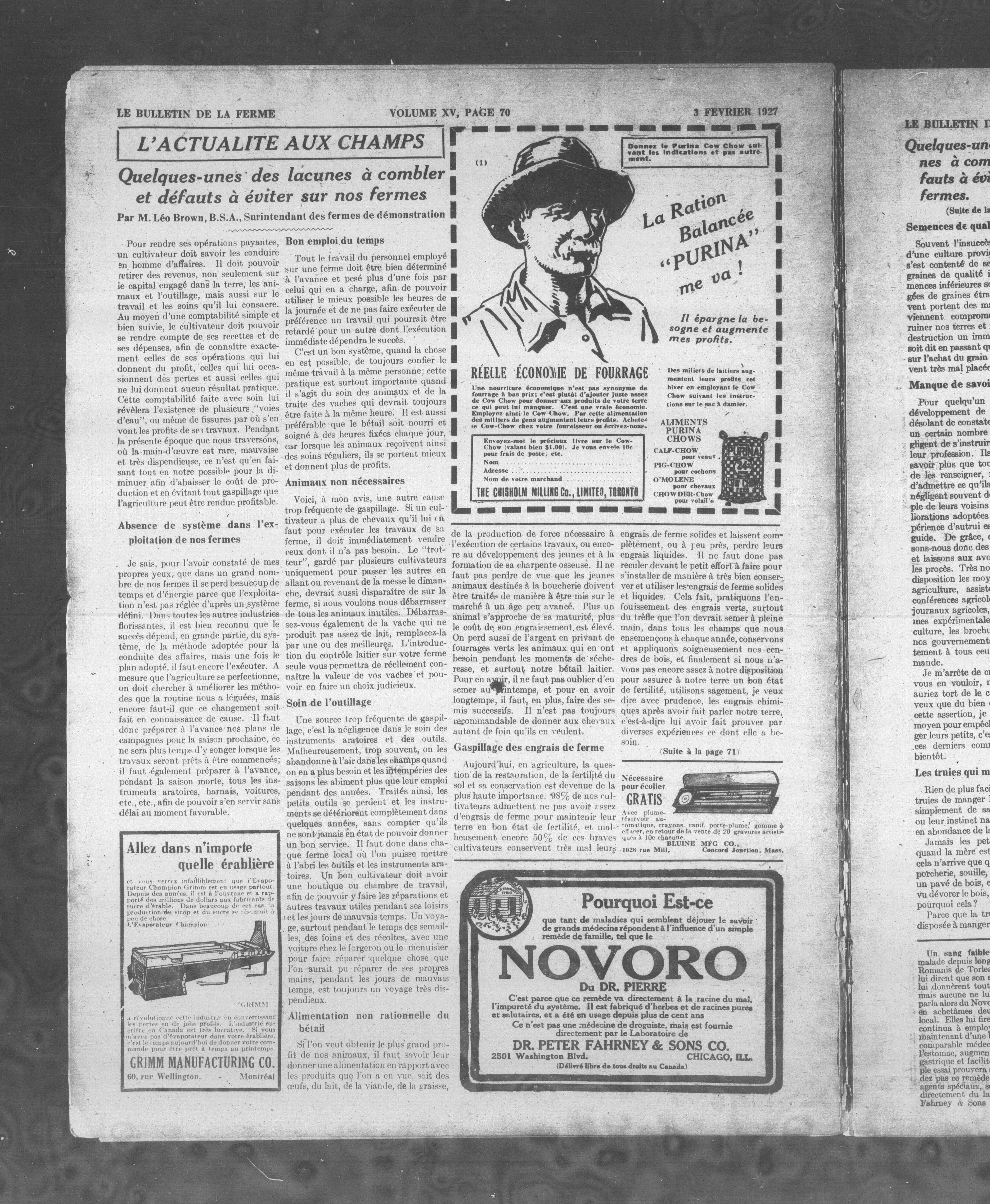 - Le Bulletin de la ferme : Volume XV, Numéro 5 (3 février 1927)