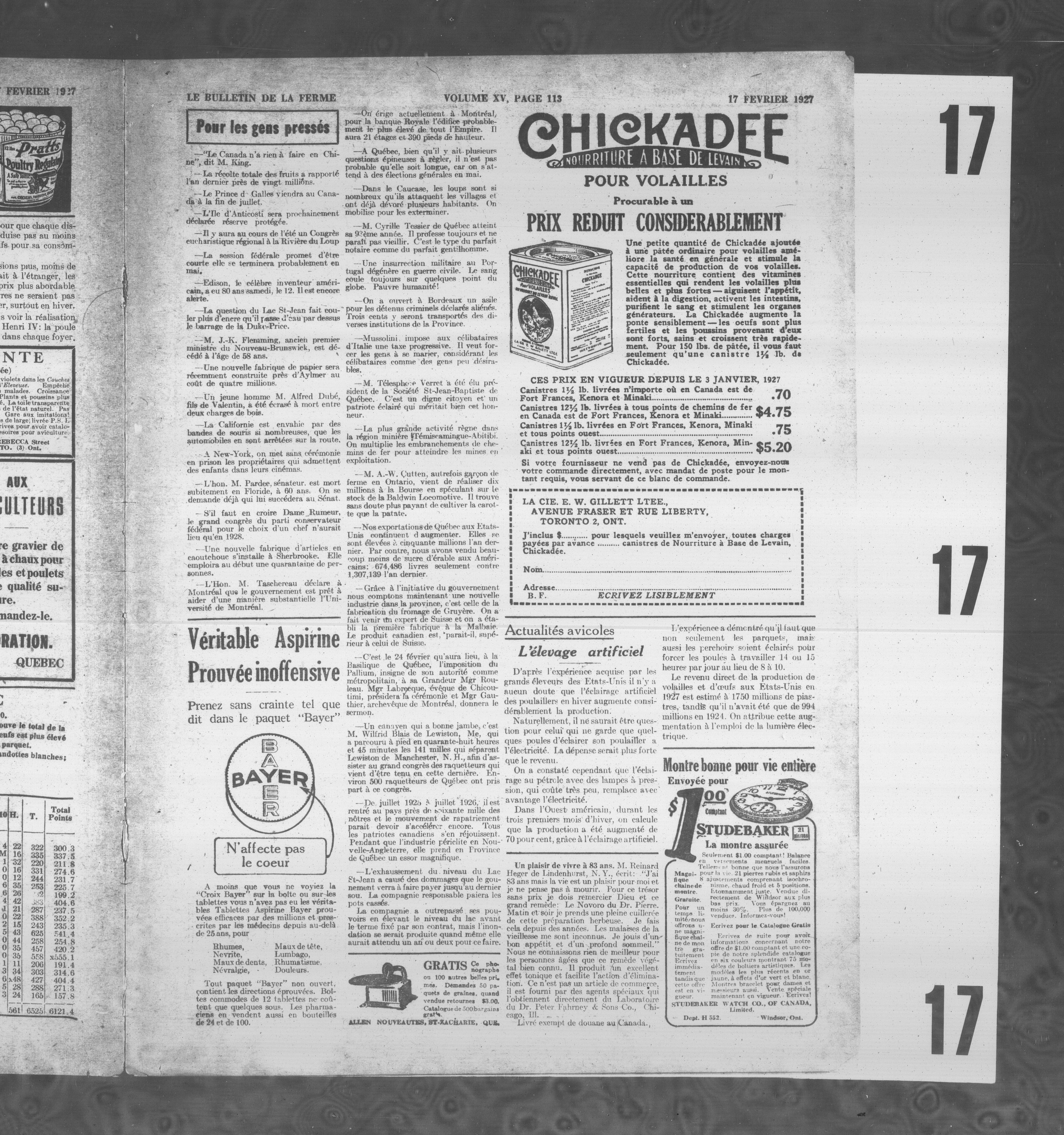- Le Bulletin de la ferme : Volume XV, Numéro 7 (17 février 1927)