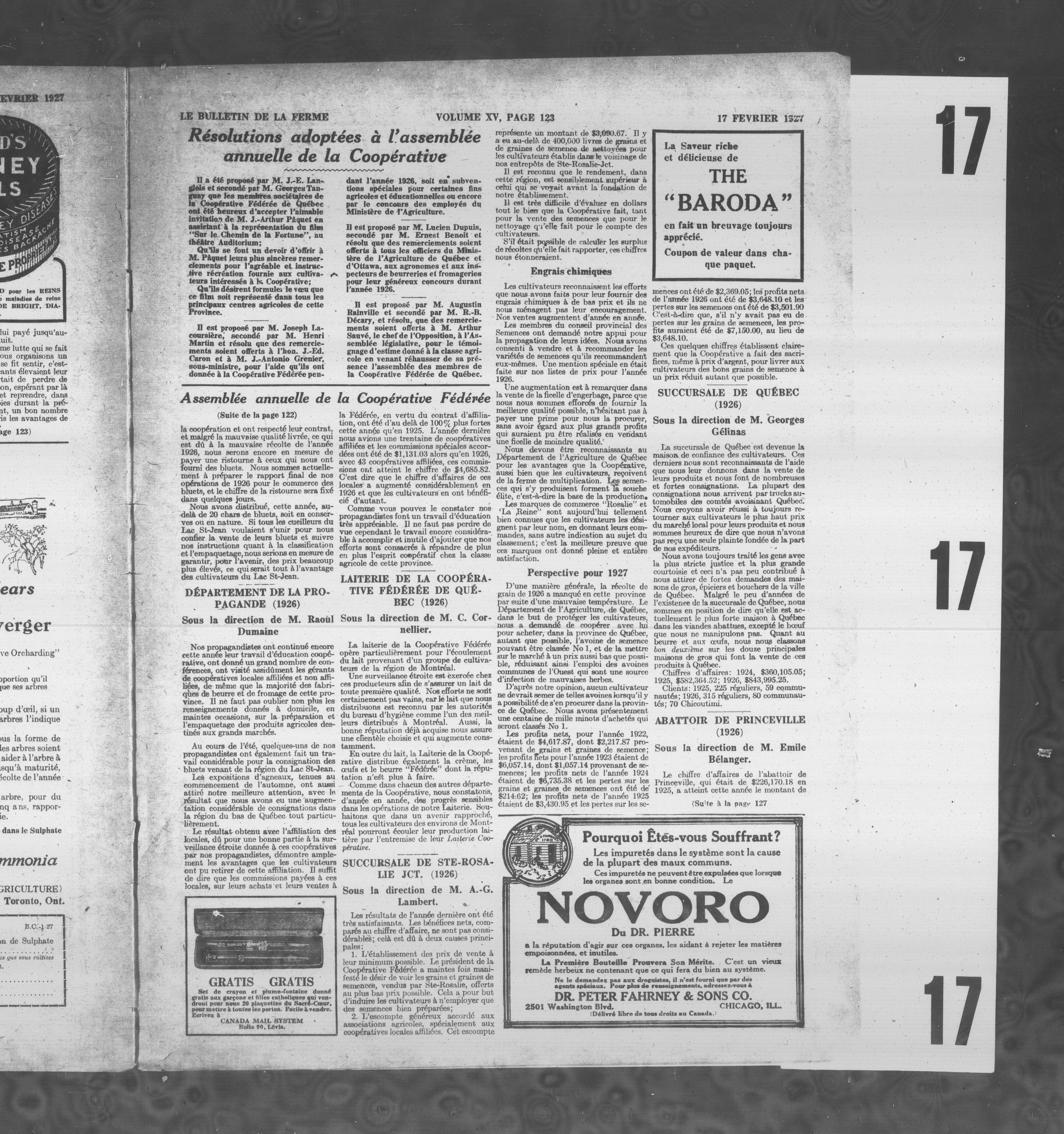 - Le Bulletin de la ferme : Volume XV, Numéro 7 (17 février 1927)