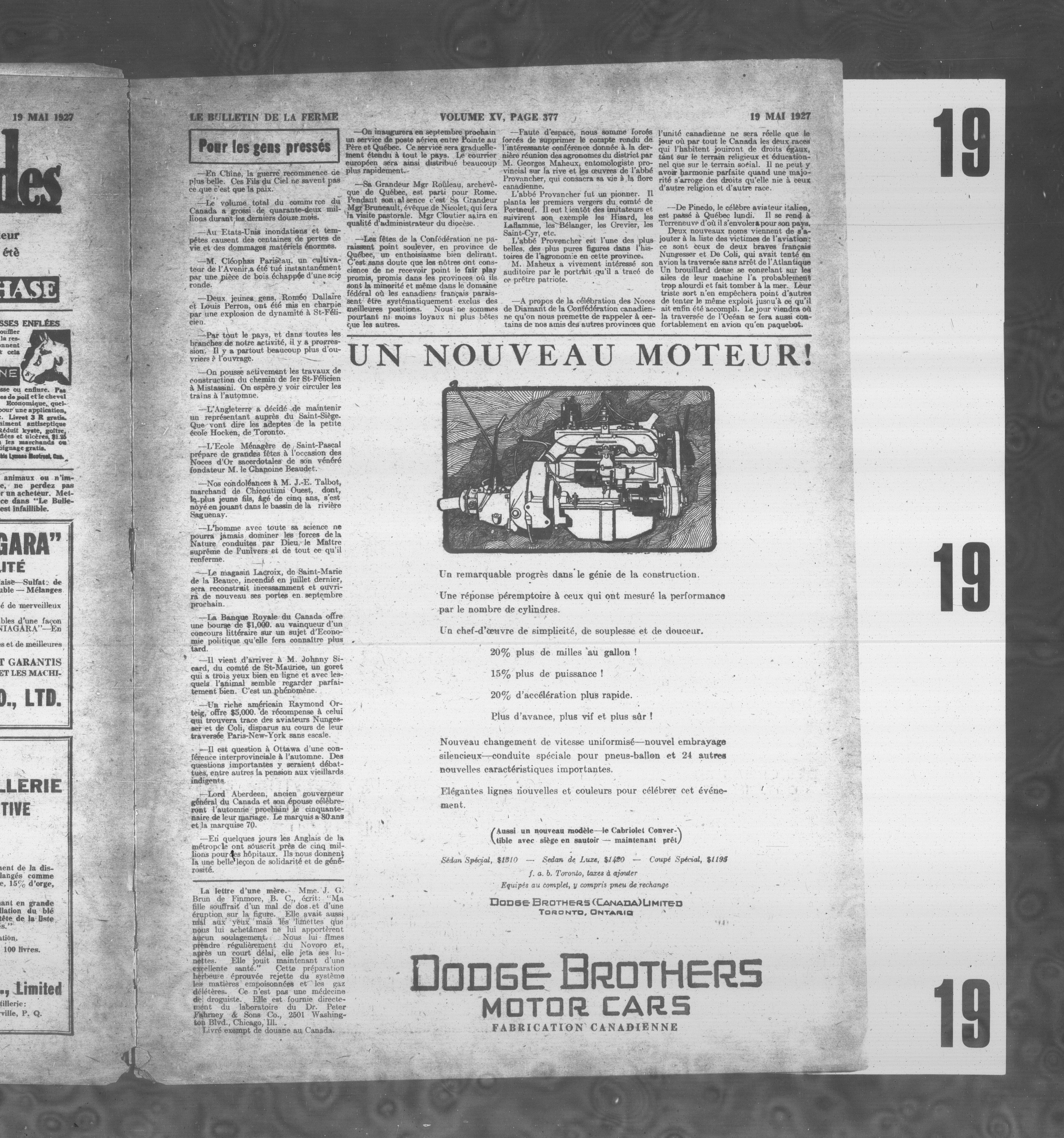 - Le Bulletin de la ferme : Volume XV, Numéro 20 (19 mai 1927)