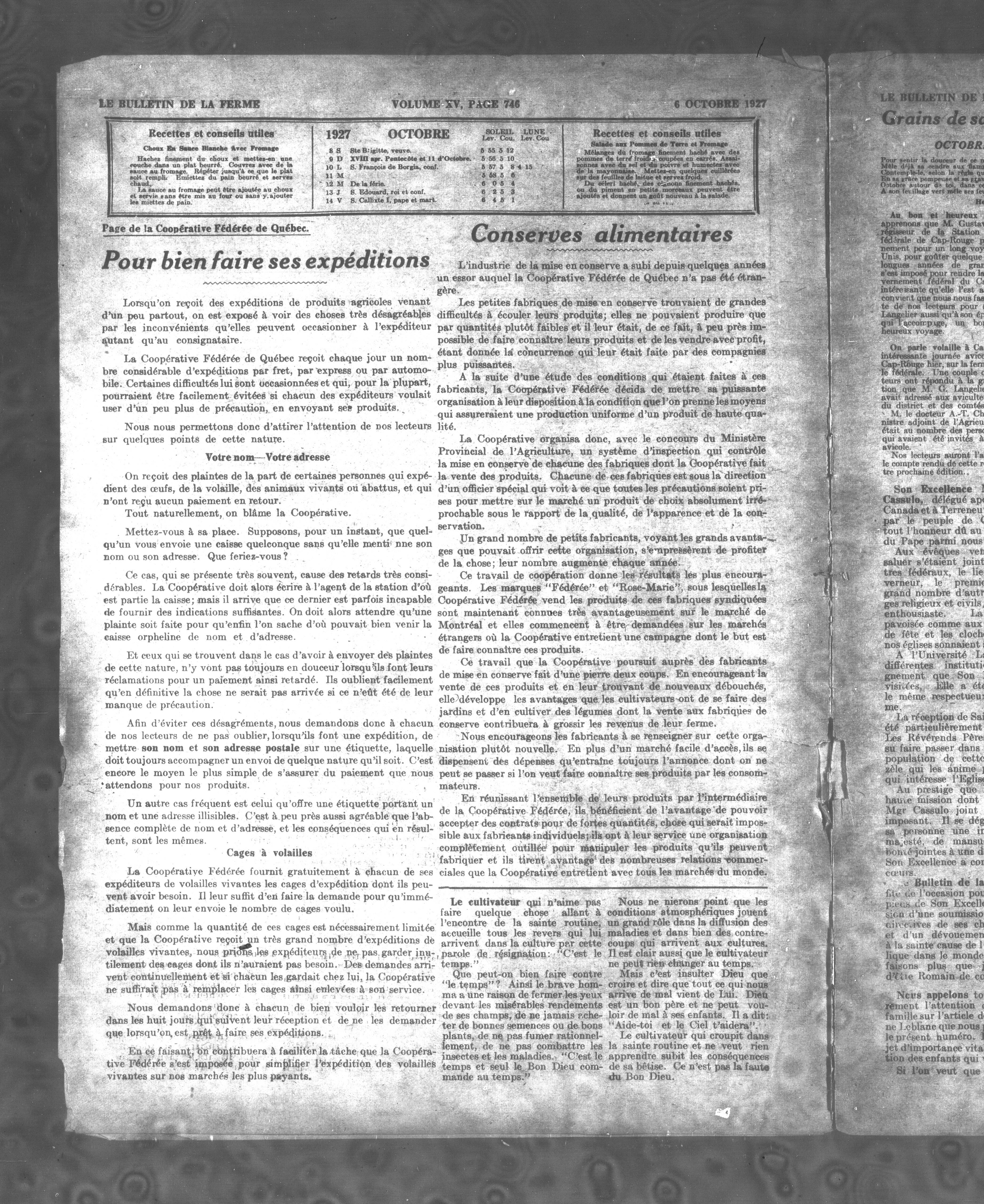 Le Bulletin de la ferme : Le Bulletin de la ferme : Volume XV, Numéro 40 (6 octobre 1927)