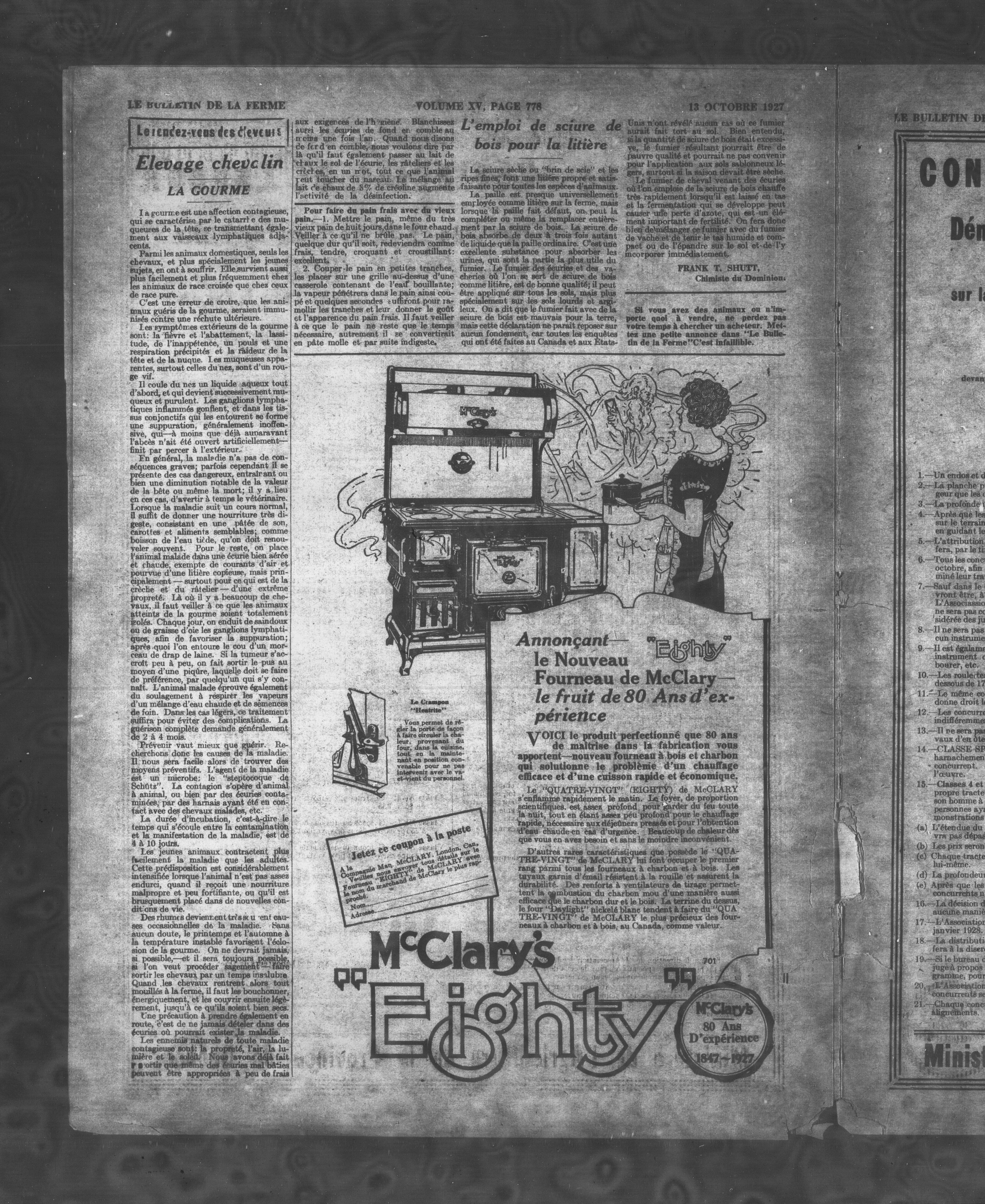 - Le Bulletin de la ferme : Volume XV, Numéro 41 (13 octobre 1927)