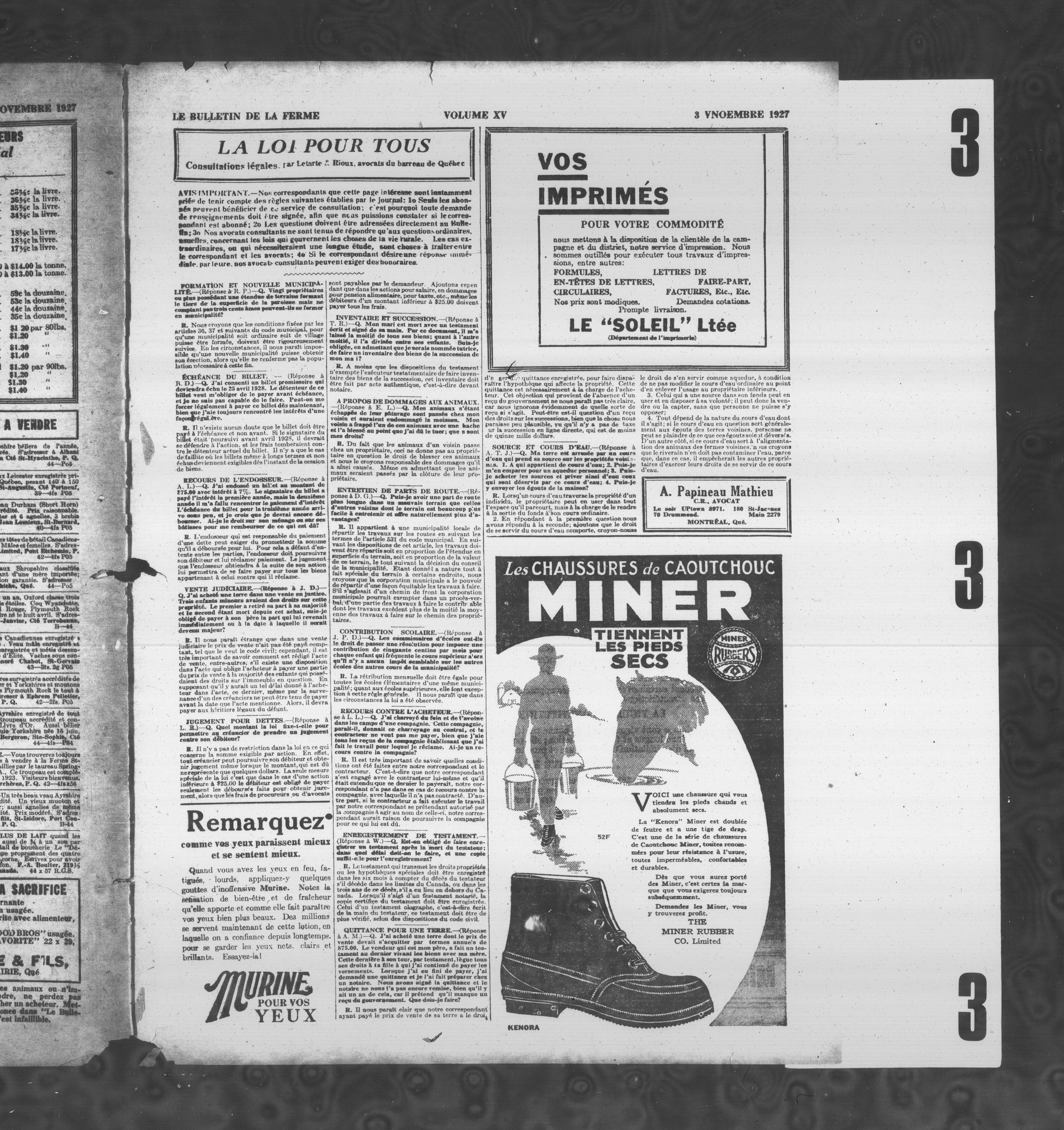 Le Bulletin de la ferme : Volume XV, Numéro 44 (3 novembre 1927)