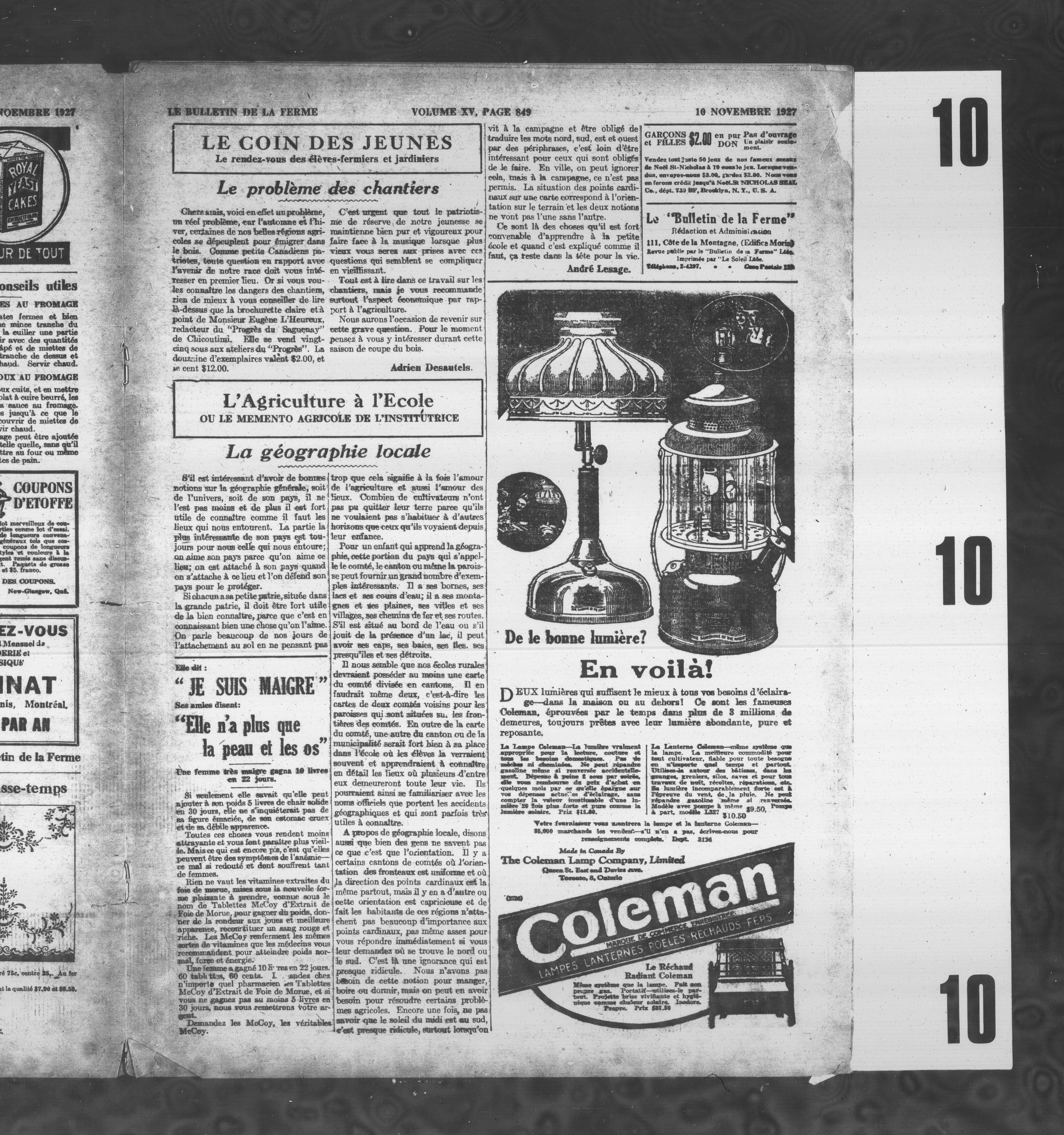Le Bulletin de la ferme : Le Bulletin de la ferme : Volume XV, Numéro 45 (10 novembre 1927)