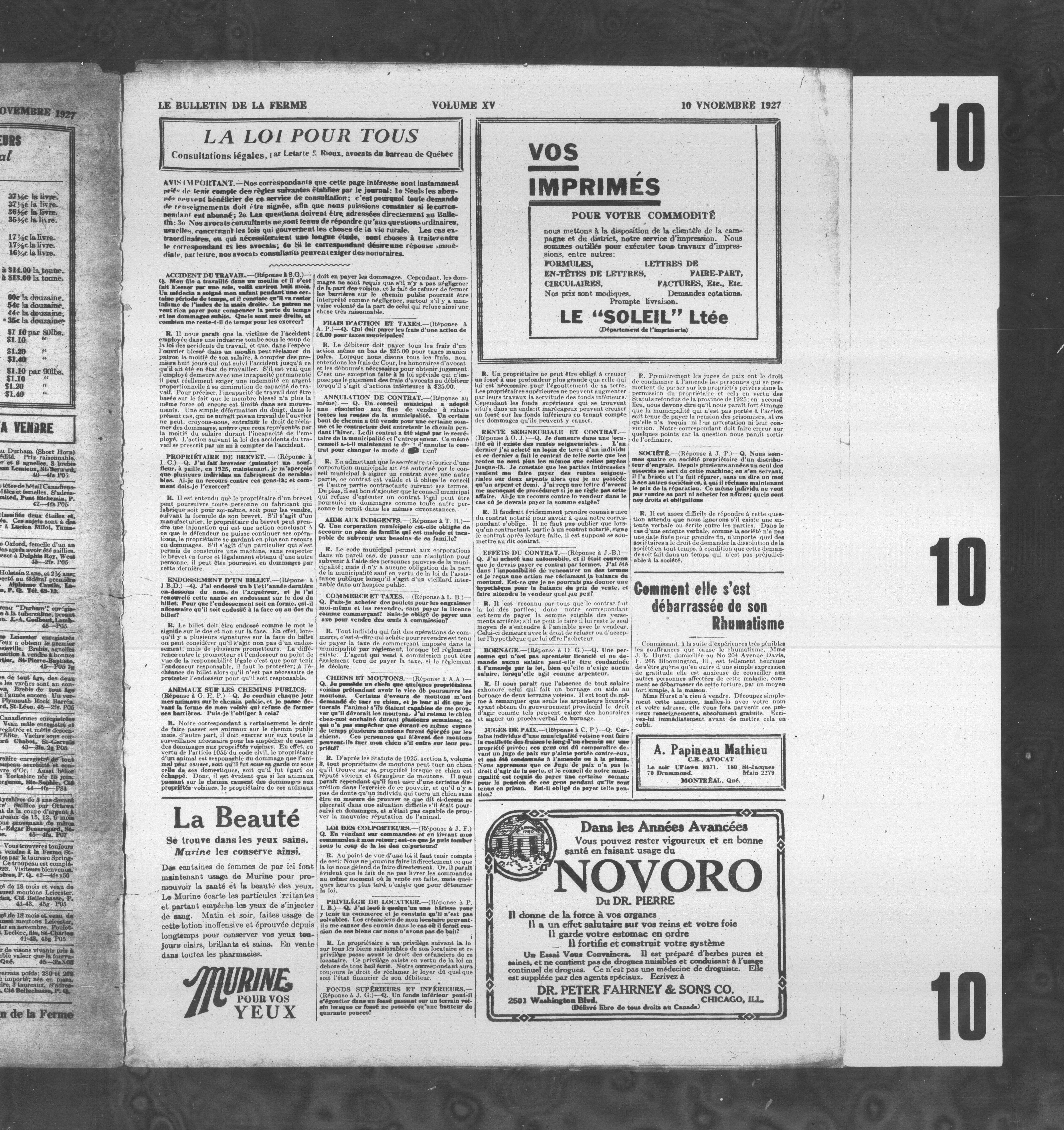 - Le Bulletin de la ferme : Volume XV, Numéro 45 (10 novembre 1927)
