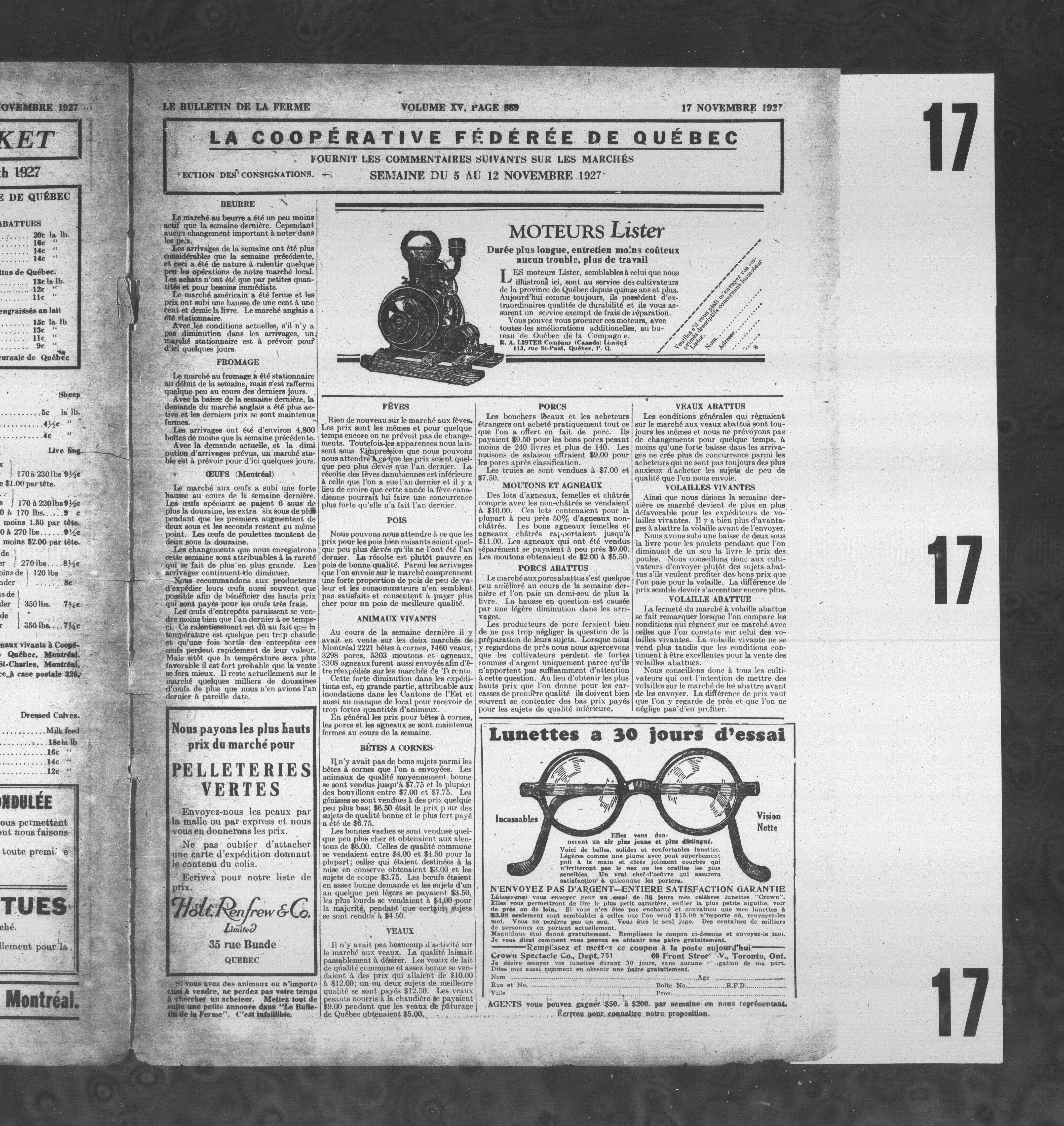- Le Bulletin de la ferme : Volume XV, Numéro 46 (17 novembre 1927)