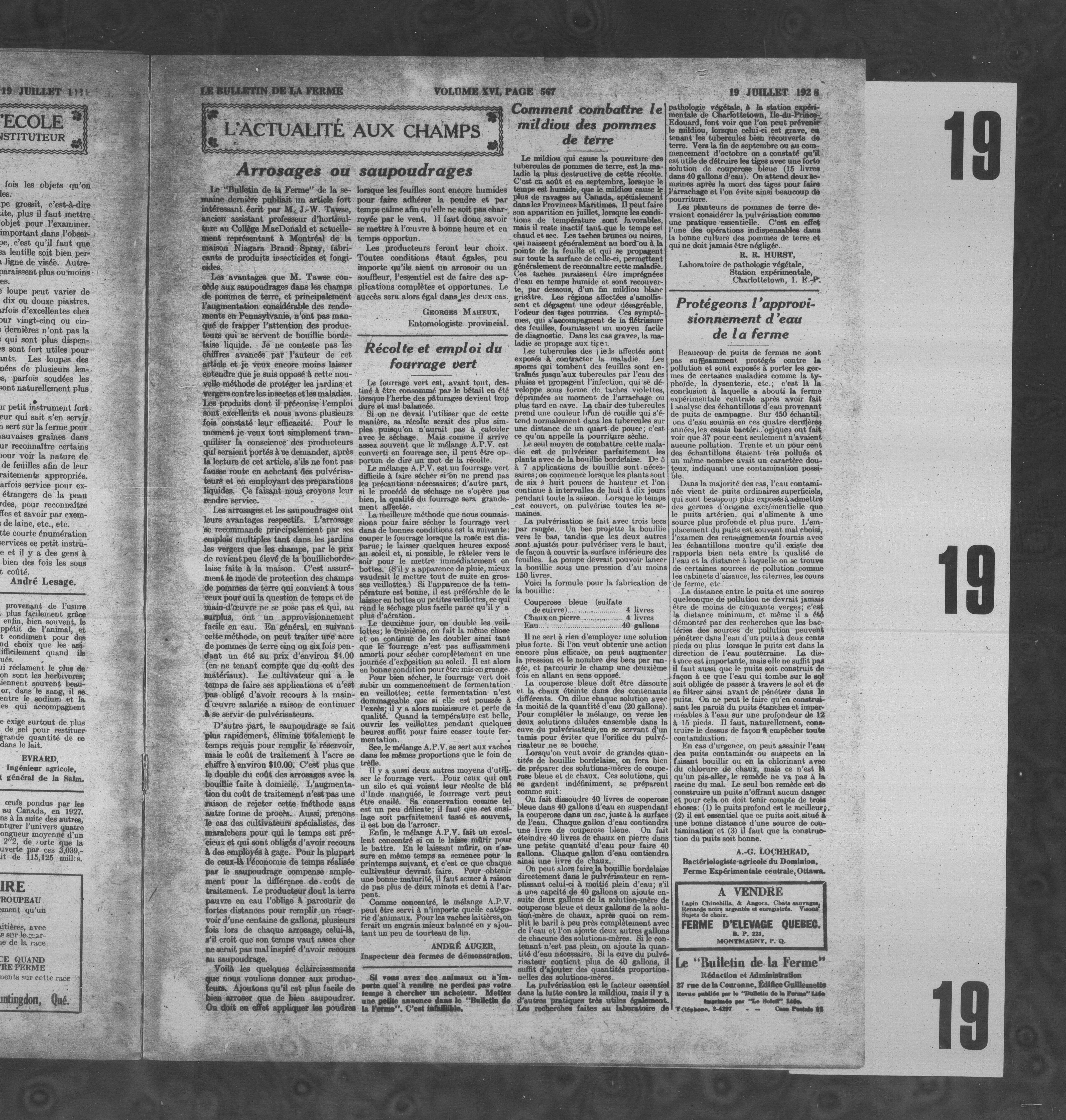 Le Bulletin de la ferme : Volume XVI, Numéro 29 (19 juillet 1928)