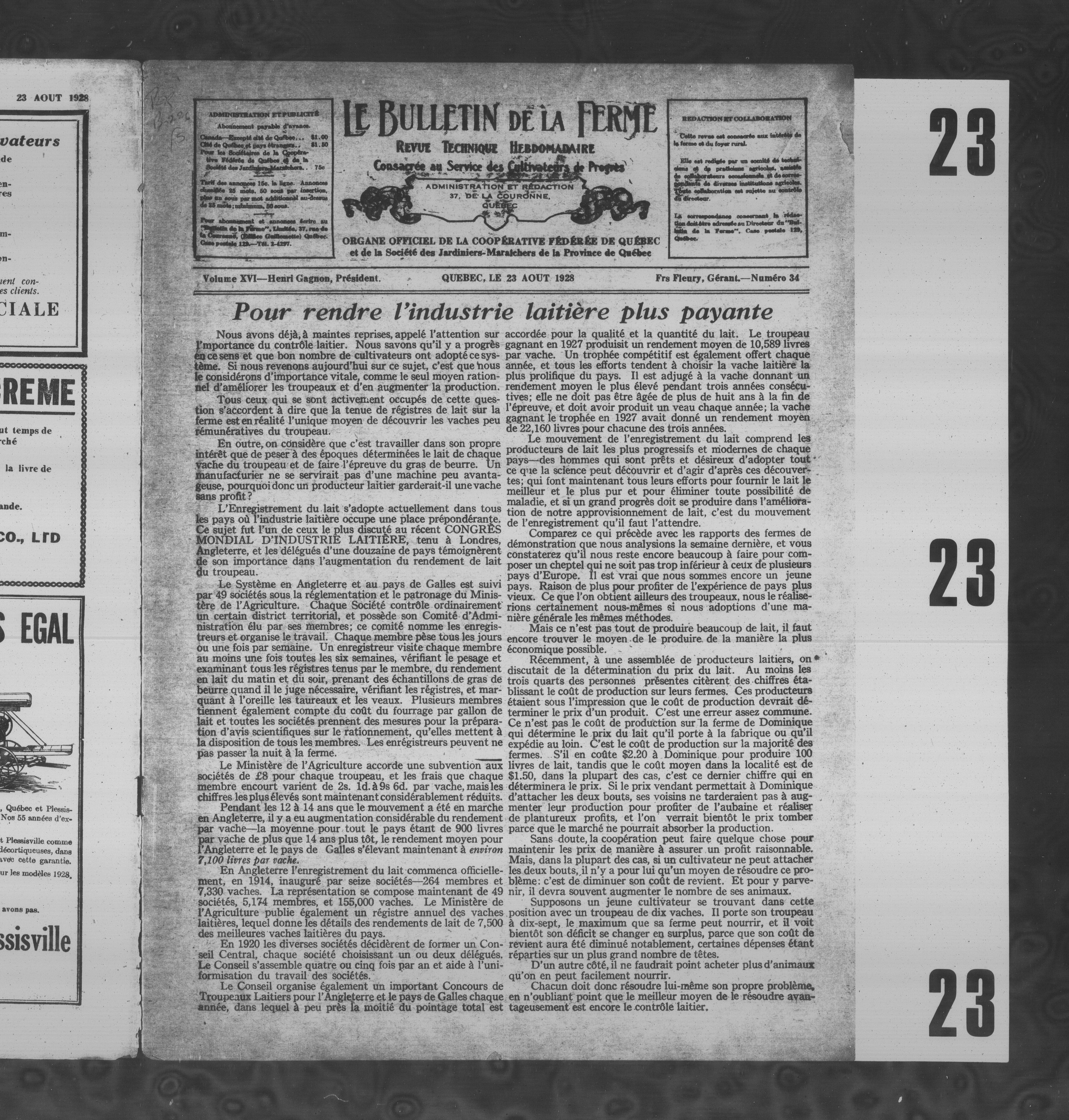 - Le Bulletin de la ferme : Volume XVI, Numéro 34 (23 août 1928)