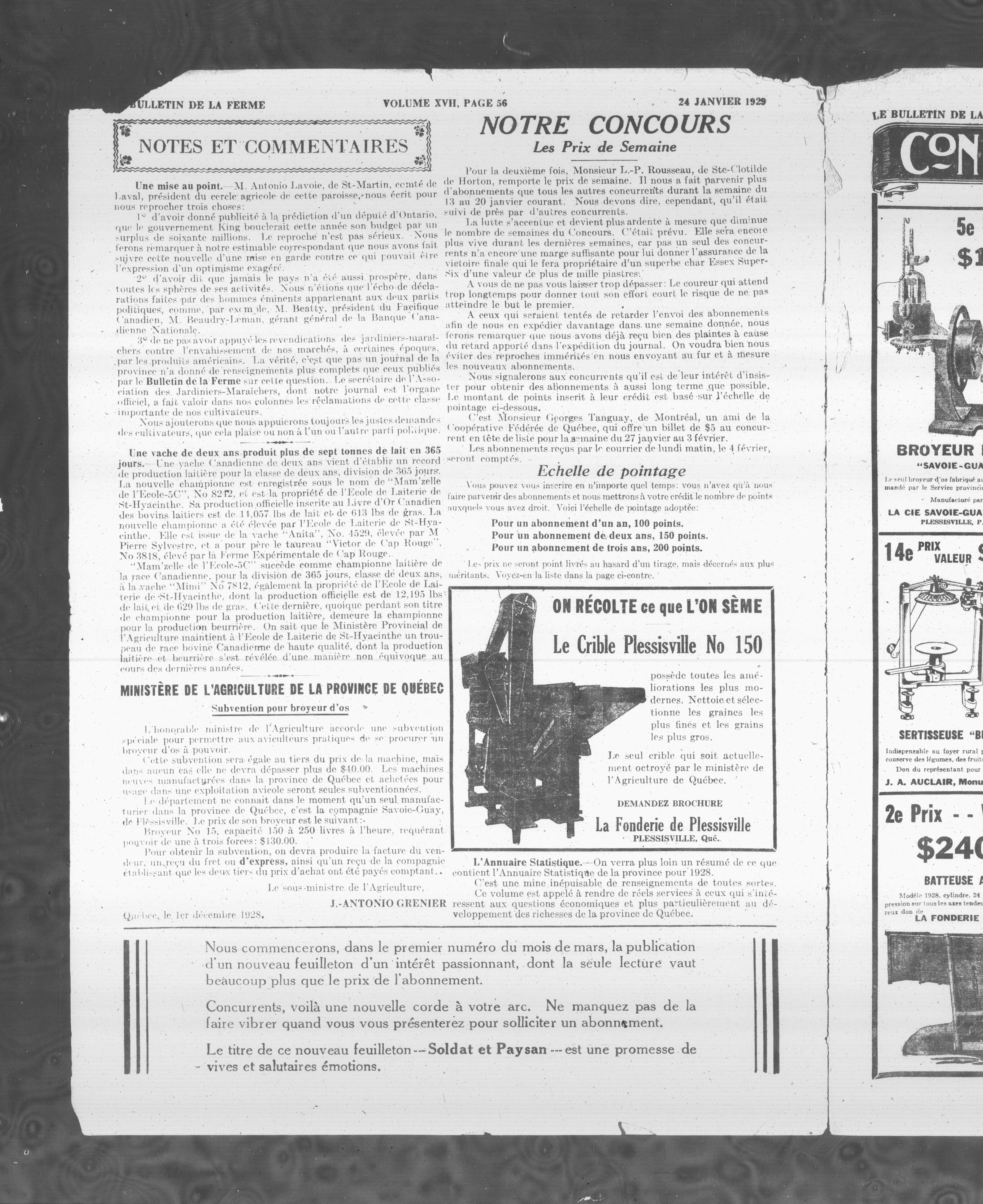 - Le Bulletin de la ferme : Volume XVII, Numéro 4 (24 janvier 1929)