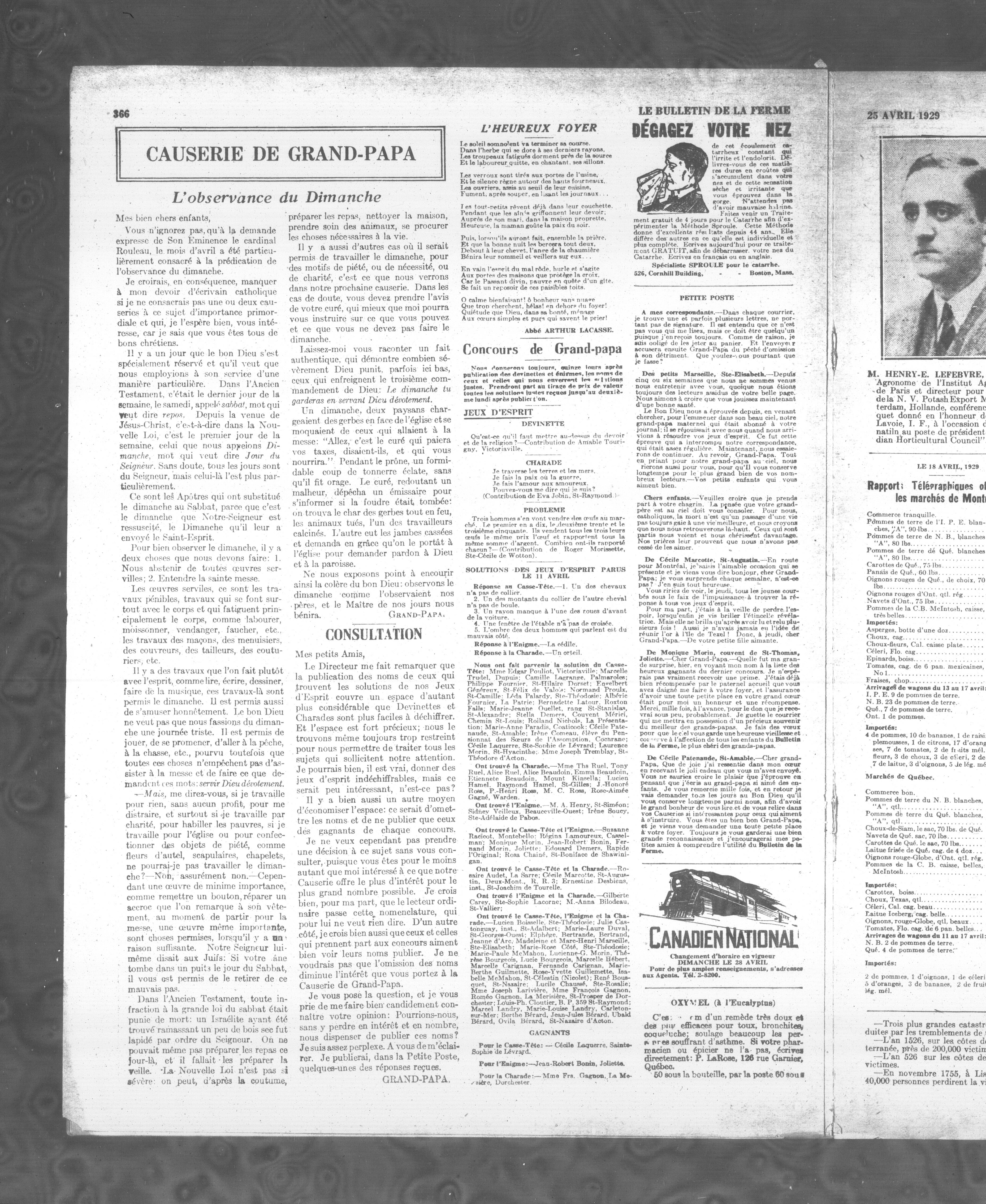 Le Bulletin de la ferme : Le Bulletin de la ferme : Volume XVII, Numéro 17 (25 avril 1929)