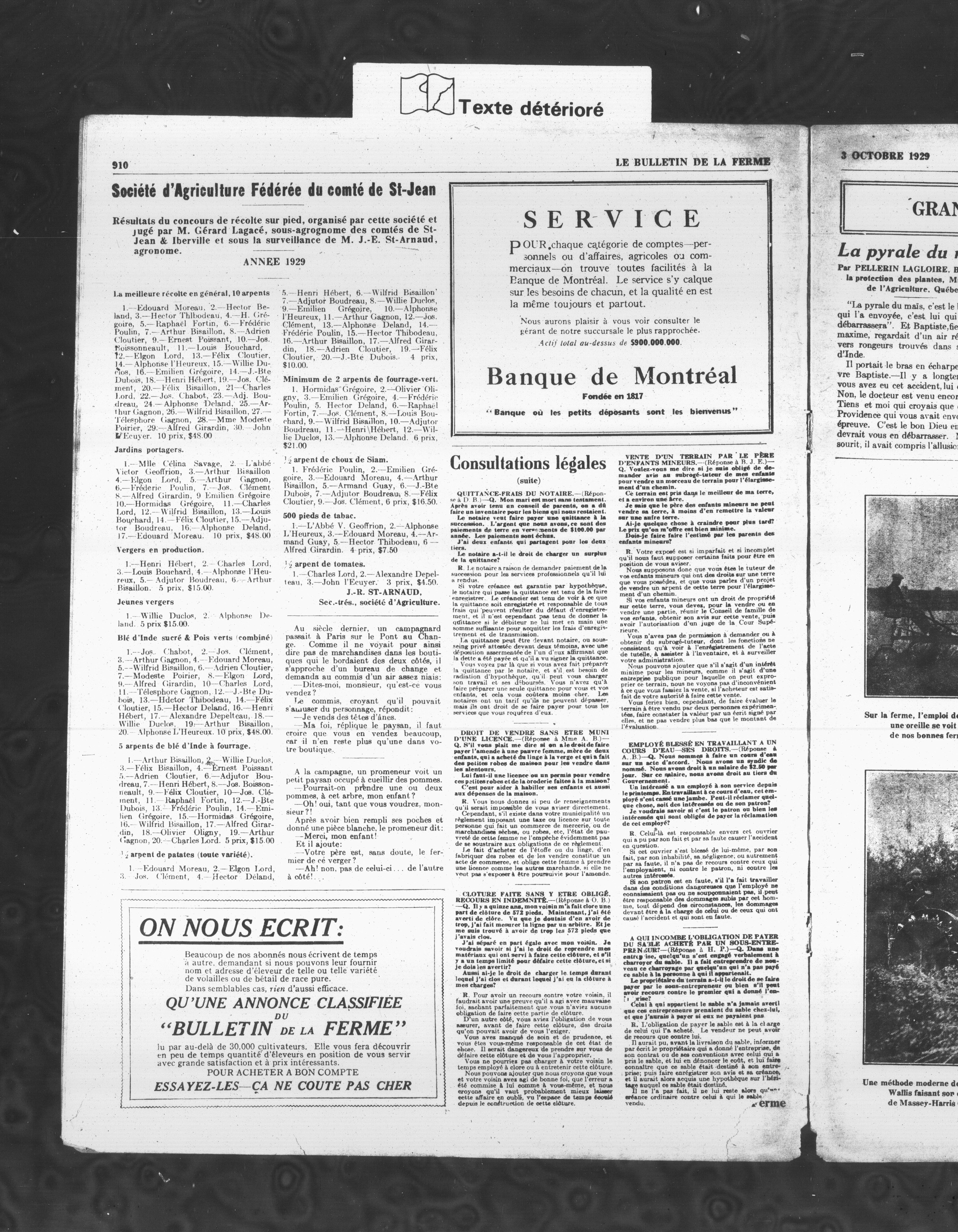 Le Bulletin de la ferme : Le Bulletin de la ferme : Volume XVII, Numéro 40 (3 octobre 1929)