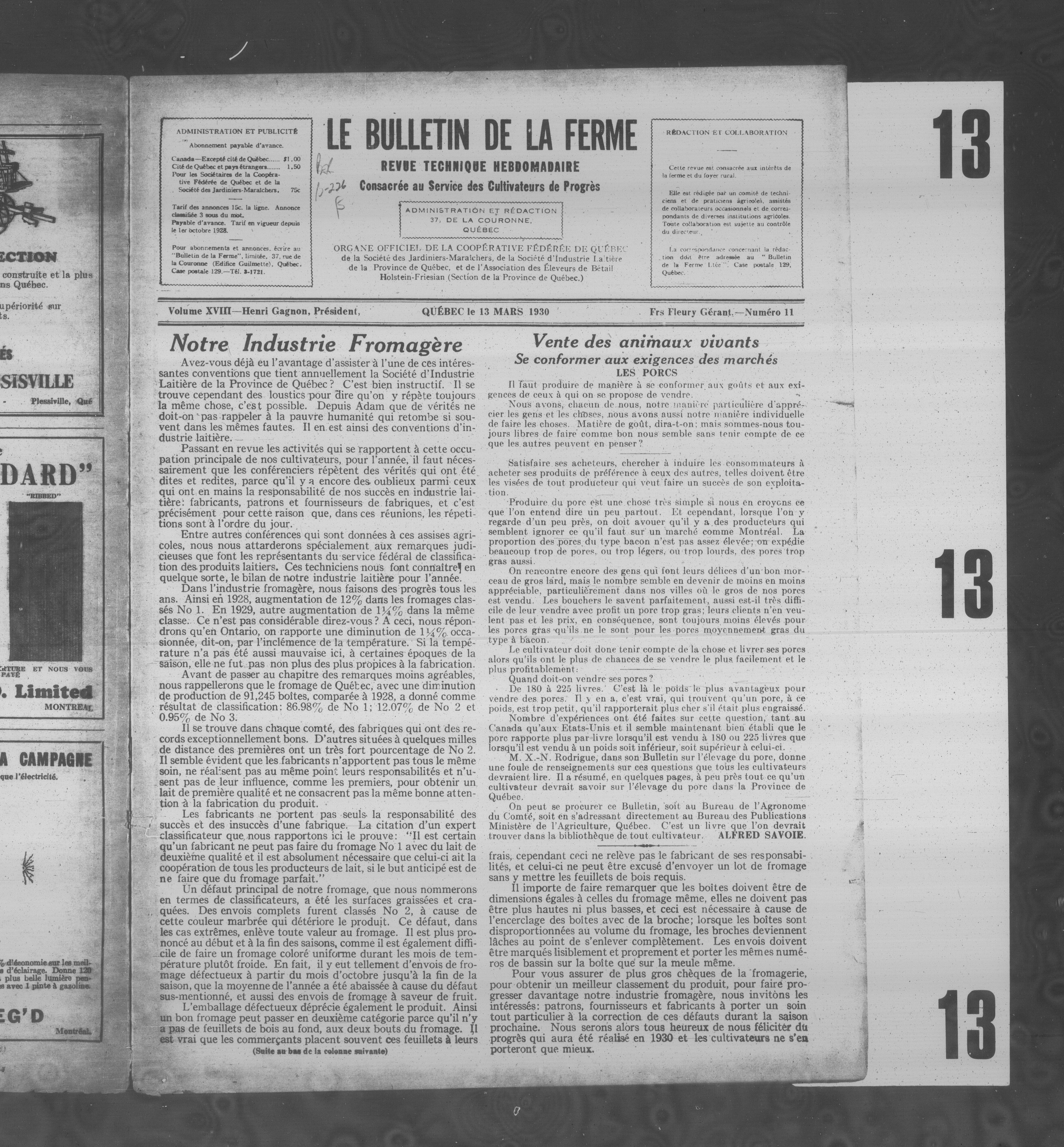 Le Bulletin de la ferme : Le Bulletin de la ferme : Volume XVIII, Numéro 11 (13 mars 1930)