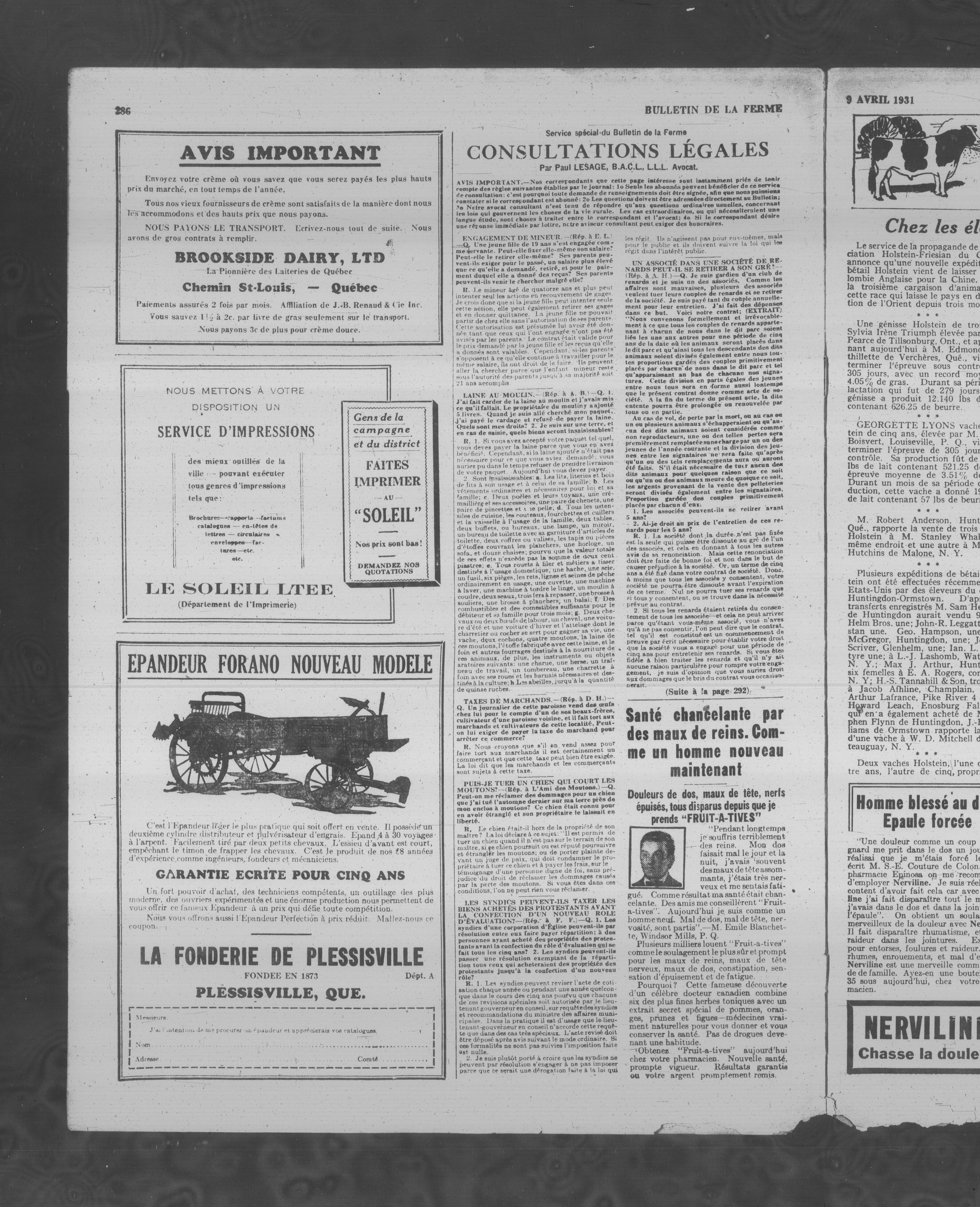 - Le Bulletin de la ferme : Volume XIX, Numéro 15 (9 avril 1931)
