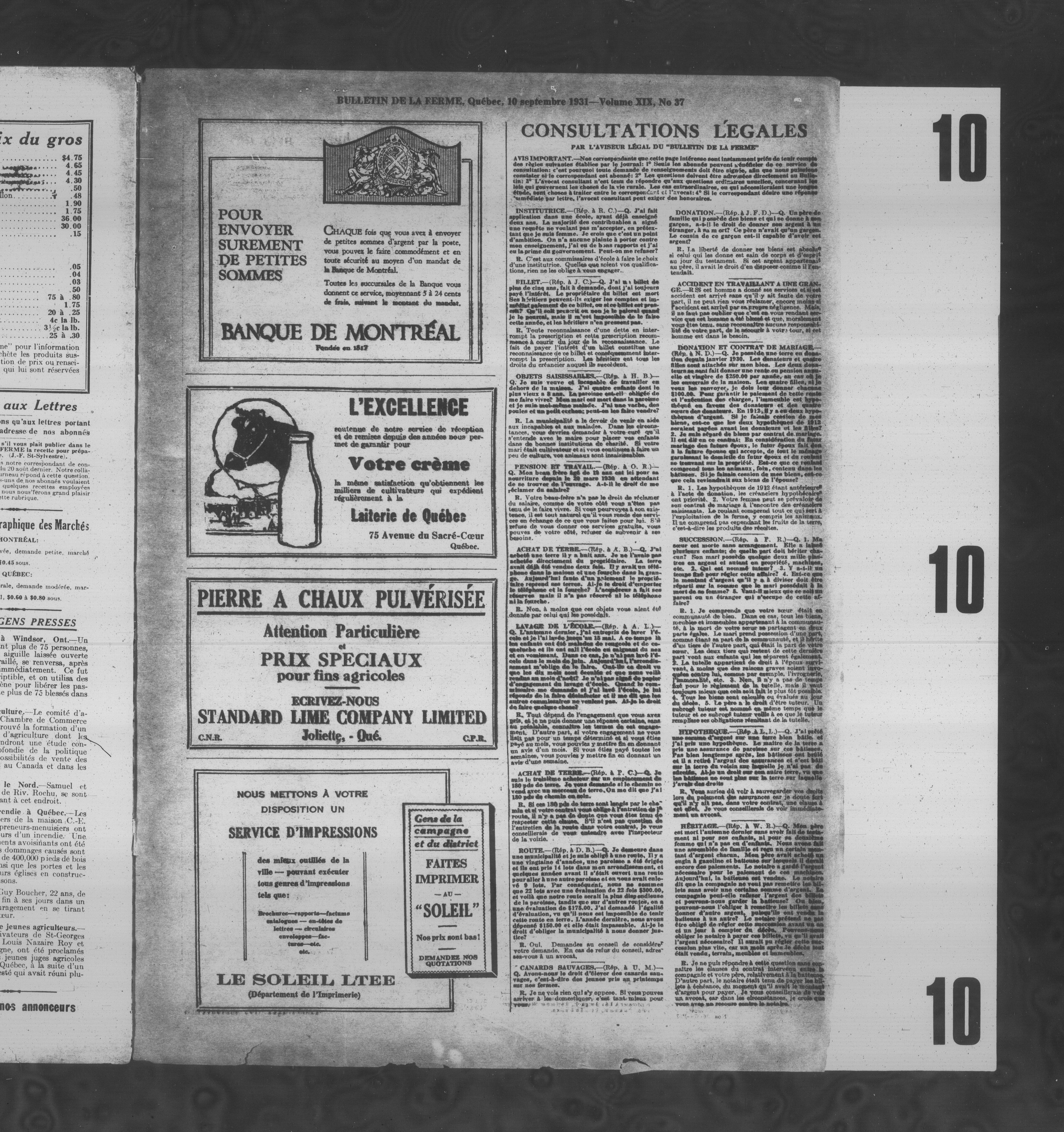 Le Bulletin de la ferme : Volume XIX, Numéro 37 (10 septembre 1931)