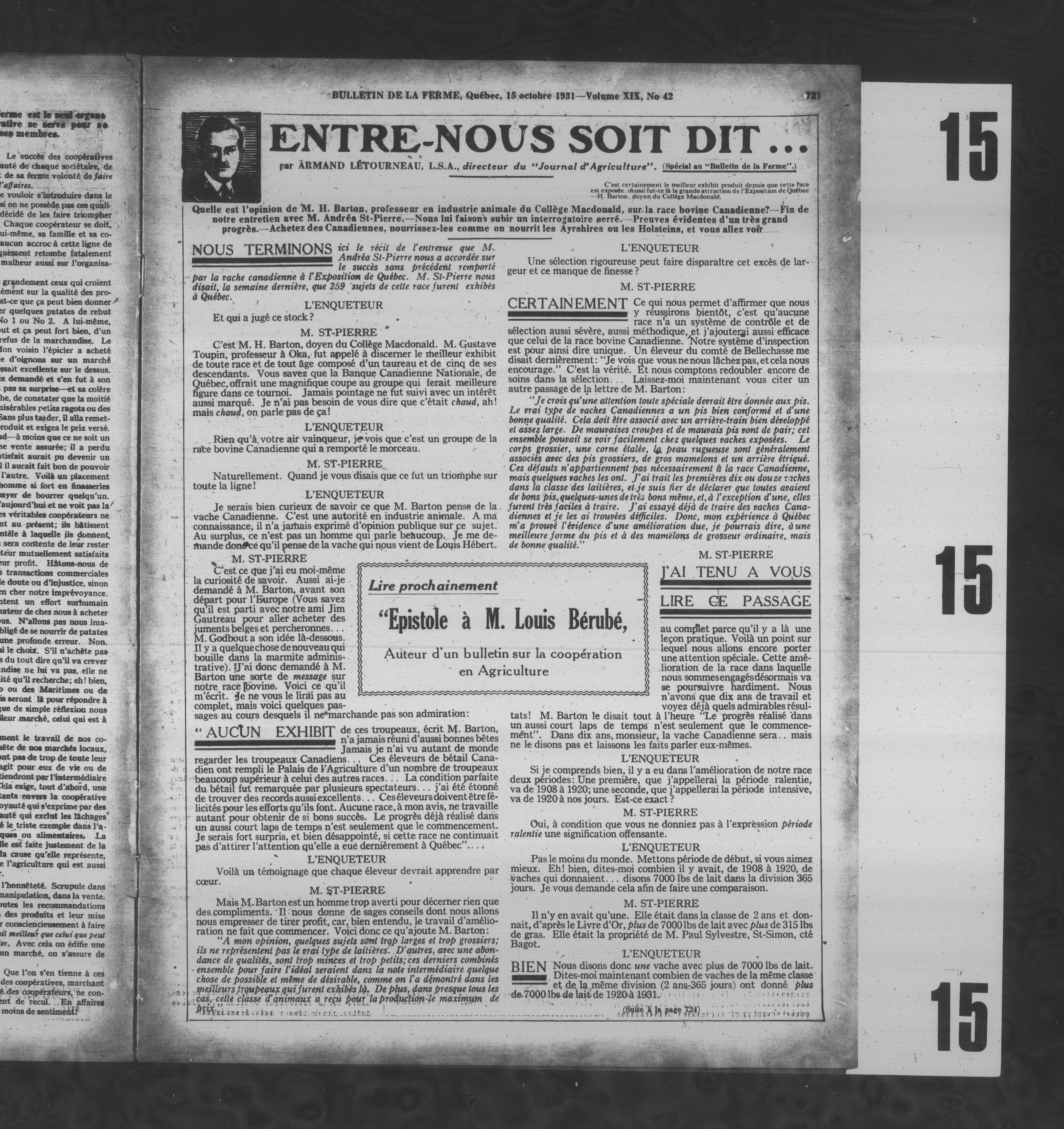Le Bulletin de la ferme : Le Bulletin de la ferme : Volume XIX, Numéro 42 (15 octobre 1931)