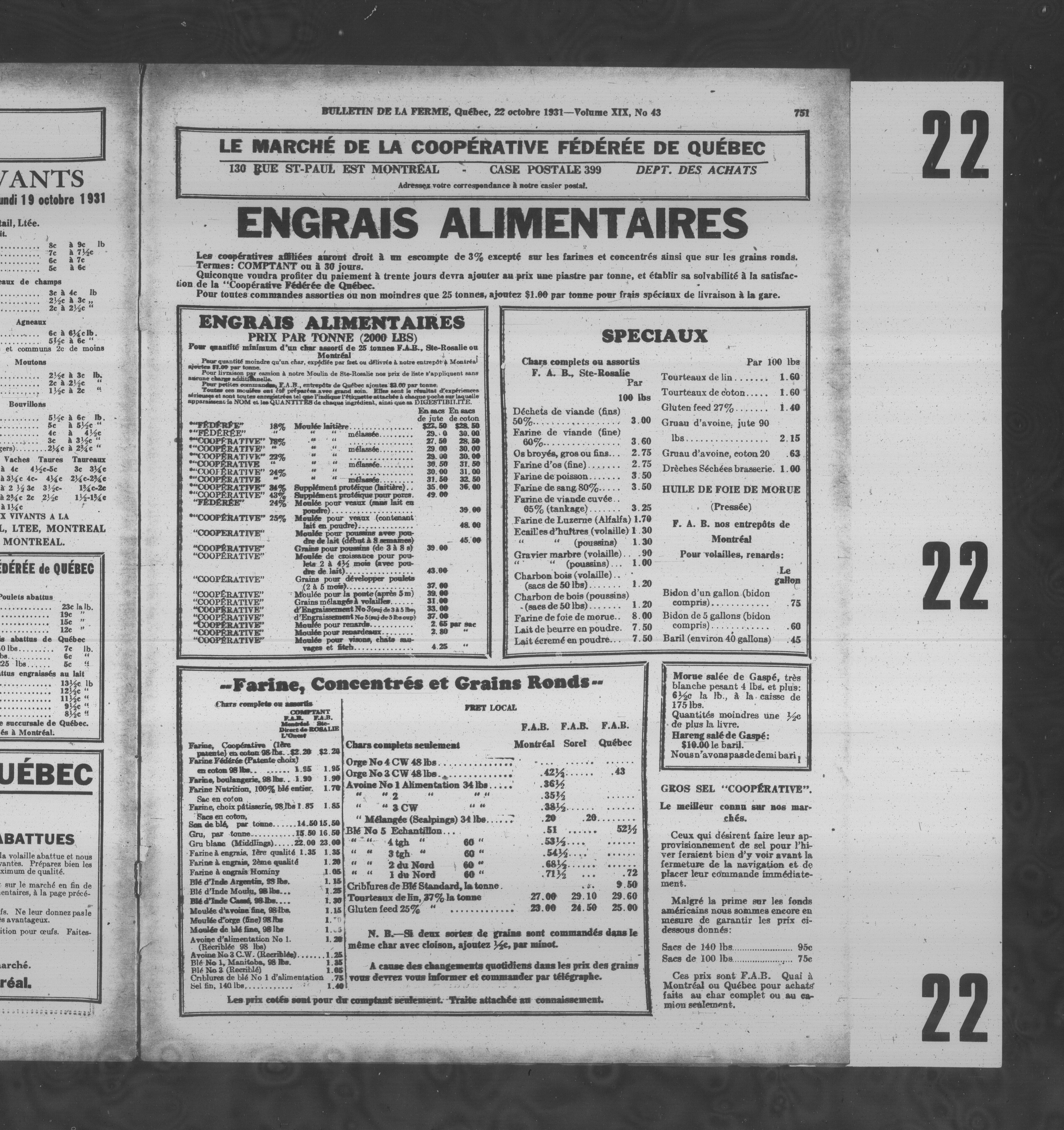 Le Bulletin de la ferme : Le Bulletin de la ferme : Volume XIX, Numéro 43 (22 octobre 1931)