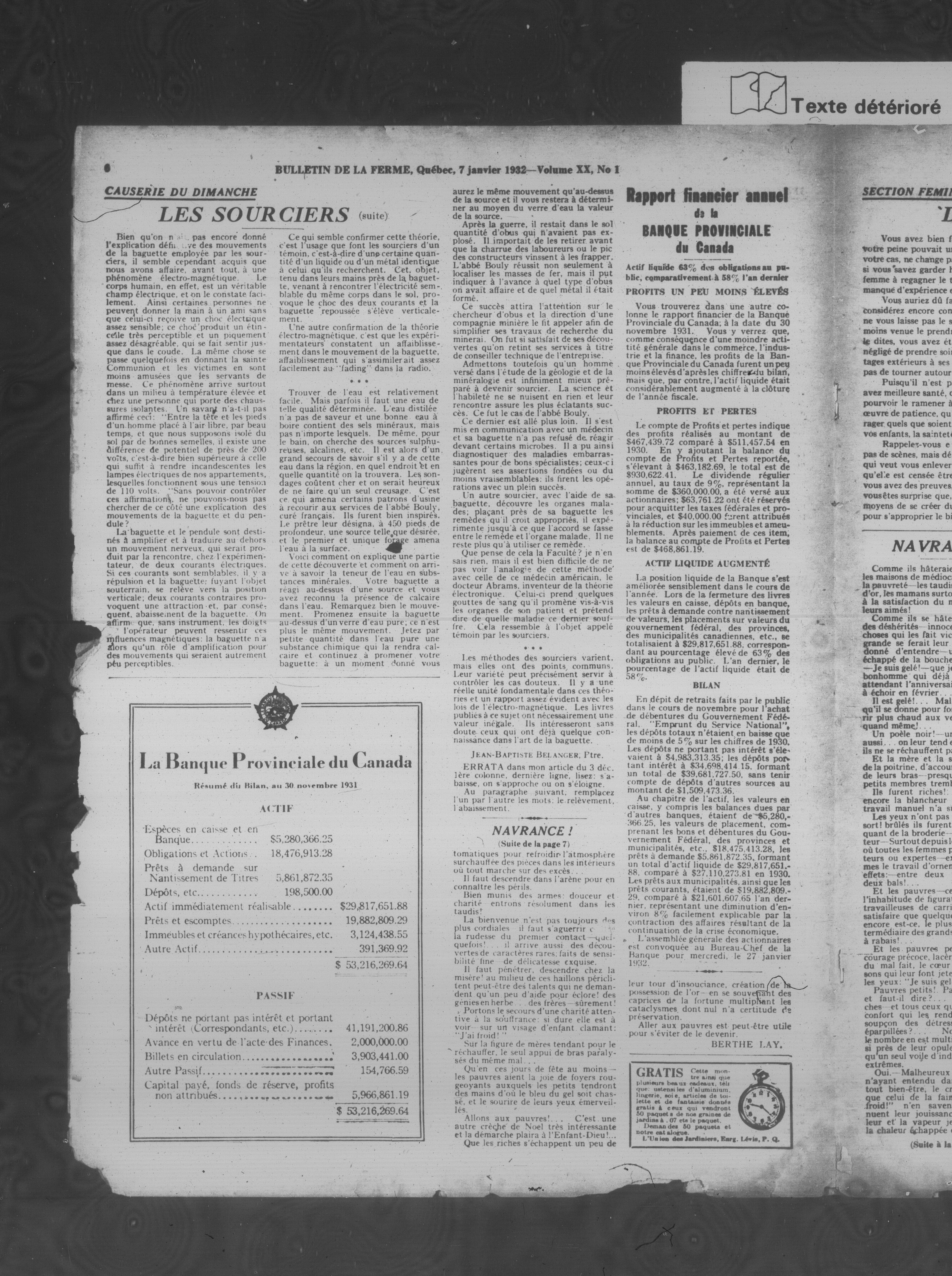Le Bulletin de la ferme : Le Bulletin de la ferme : Volume XX, Numéro 1 (7 janvier 1932)