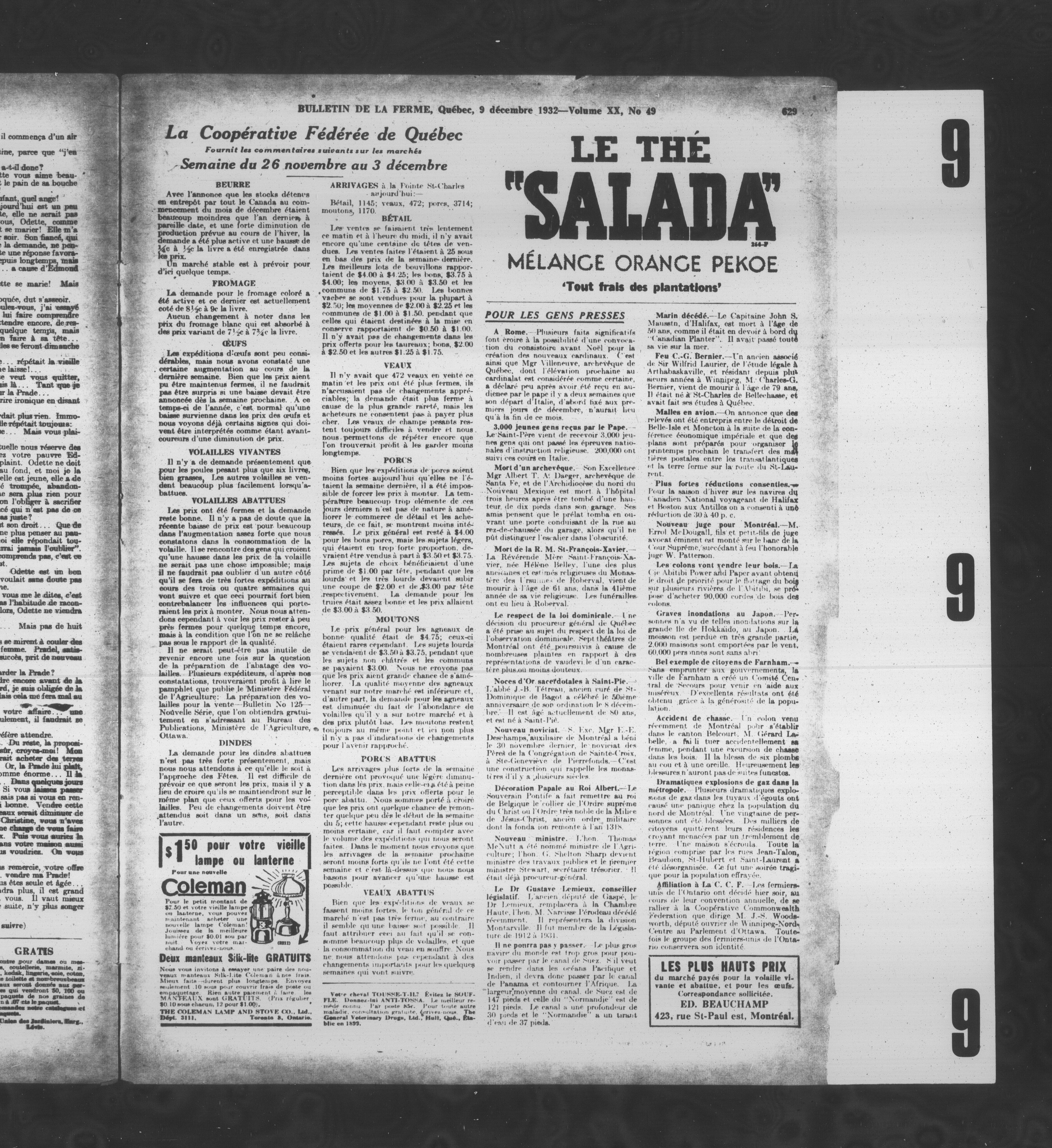 Le Bulletin de la ferme : Volume XX, Numéro 49 (9 décembre 1932)