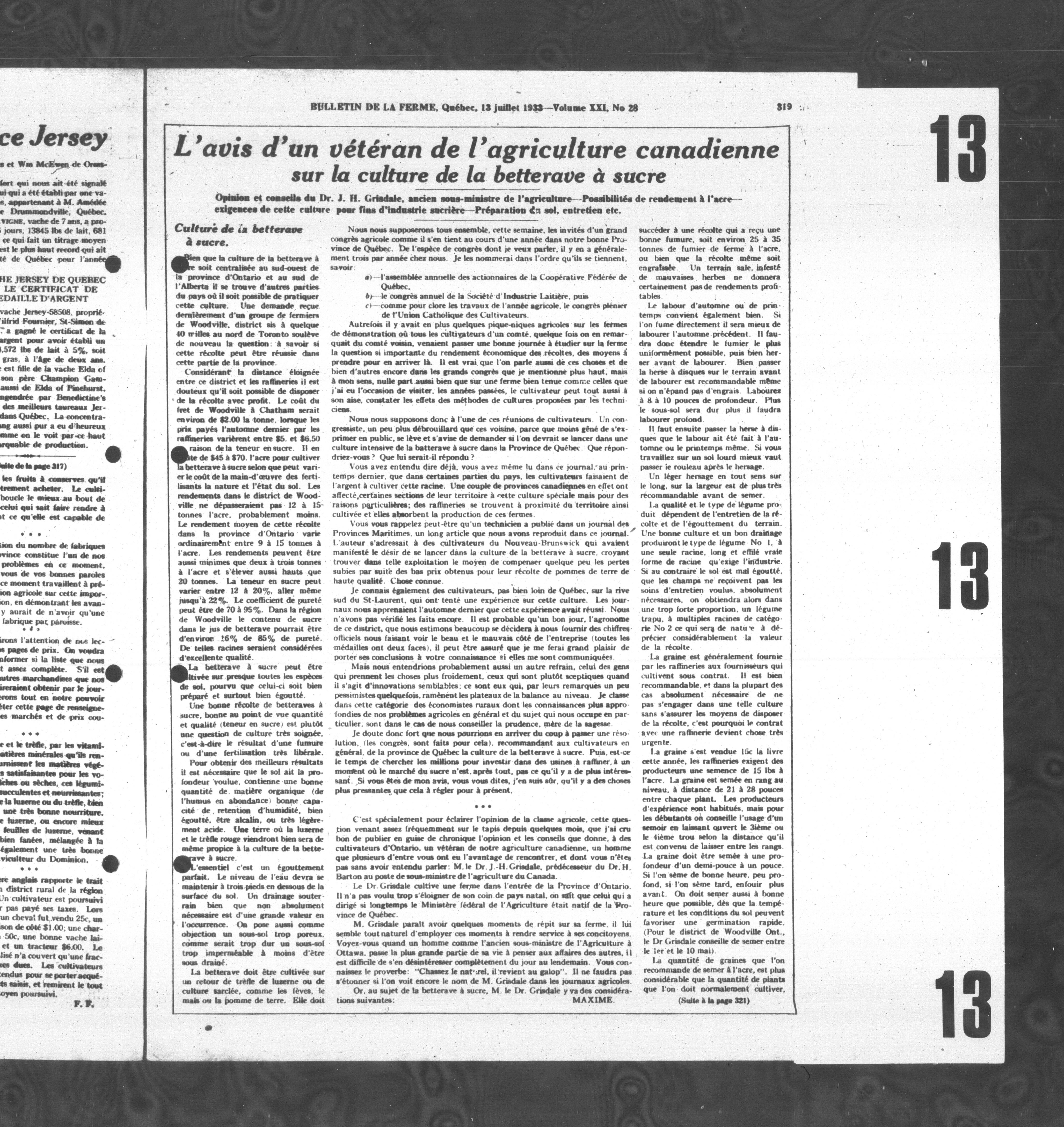- Le Bulletin de la ferme : Volume XXI, Numéro 28 (13 juillet 1933)