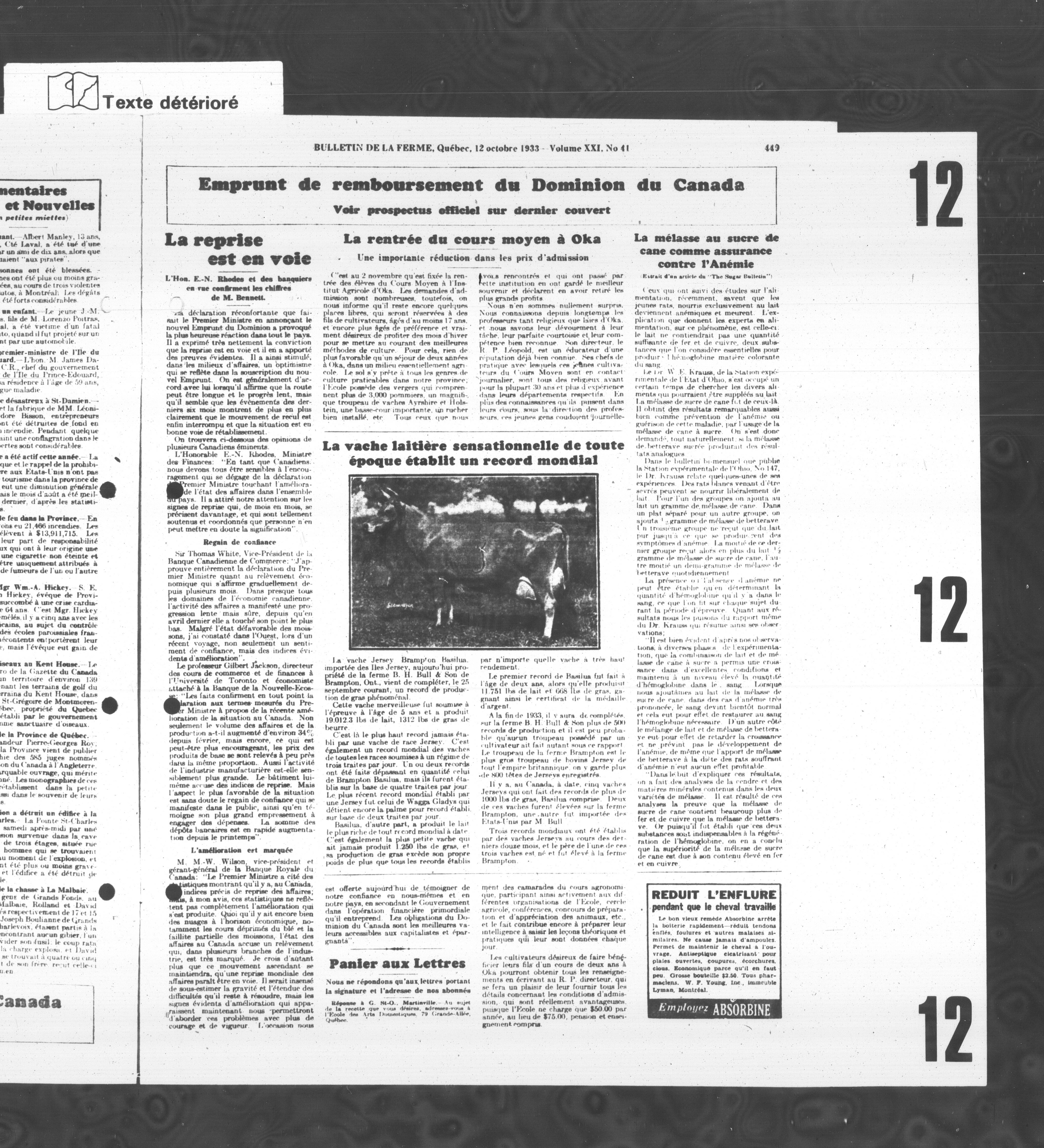Le Bulletin de la ferme : Volume XXI, Numéro 41 (12 octobre 1933)
