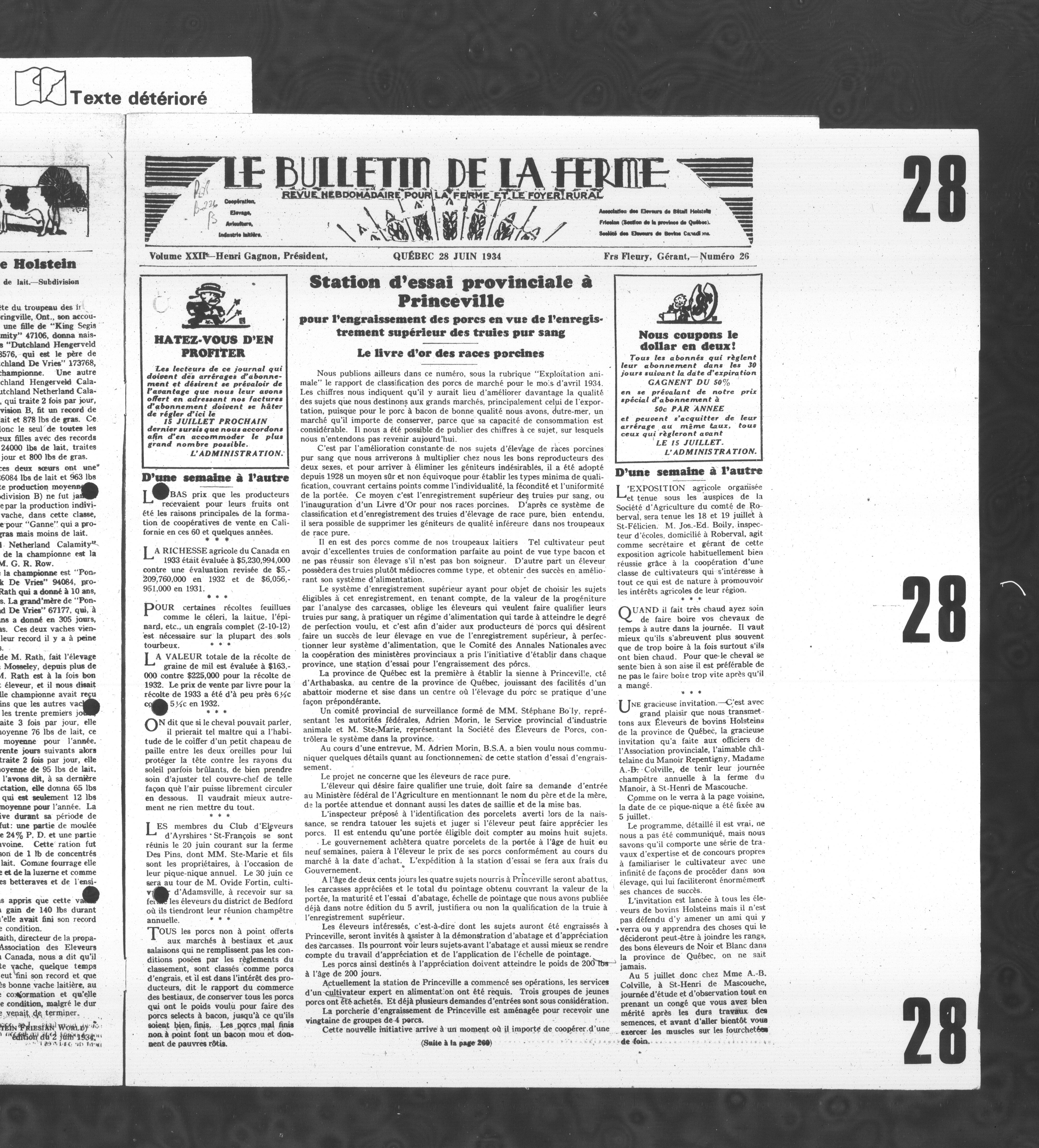 Le Bulletin de la ferme : Le Bulletin de la ferme : Volume XXII, Numéro 26 (28 juin 1934)