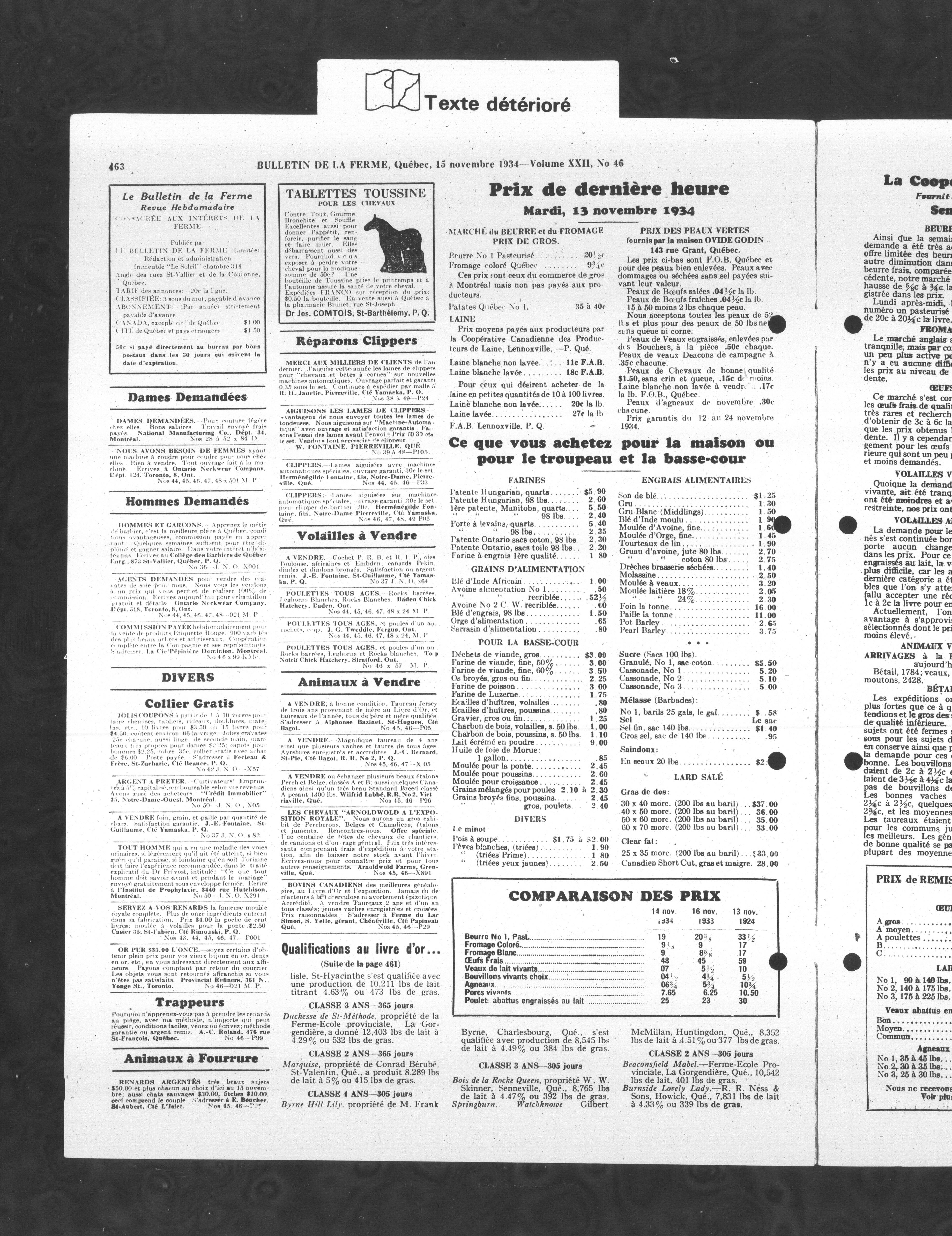 - Le Bulletin de la ferme : Volume XXII, Numéro 46 (15 novembre 1934)