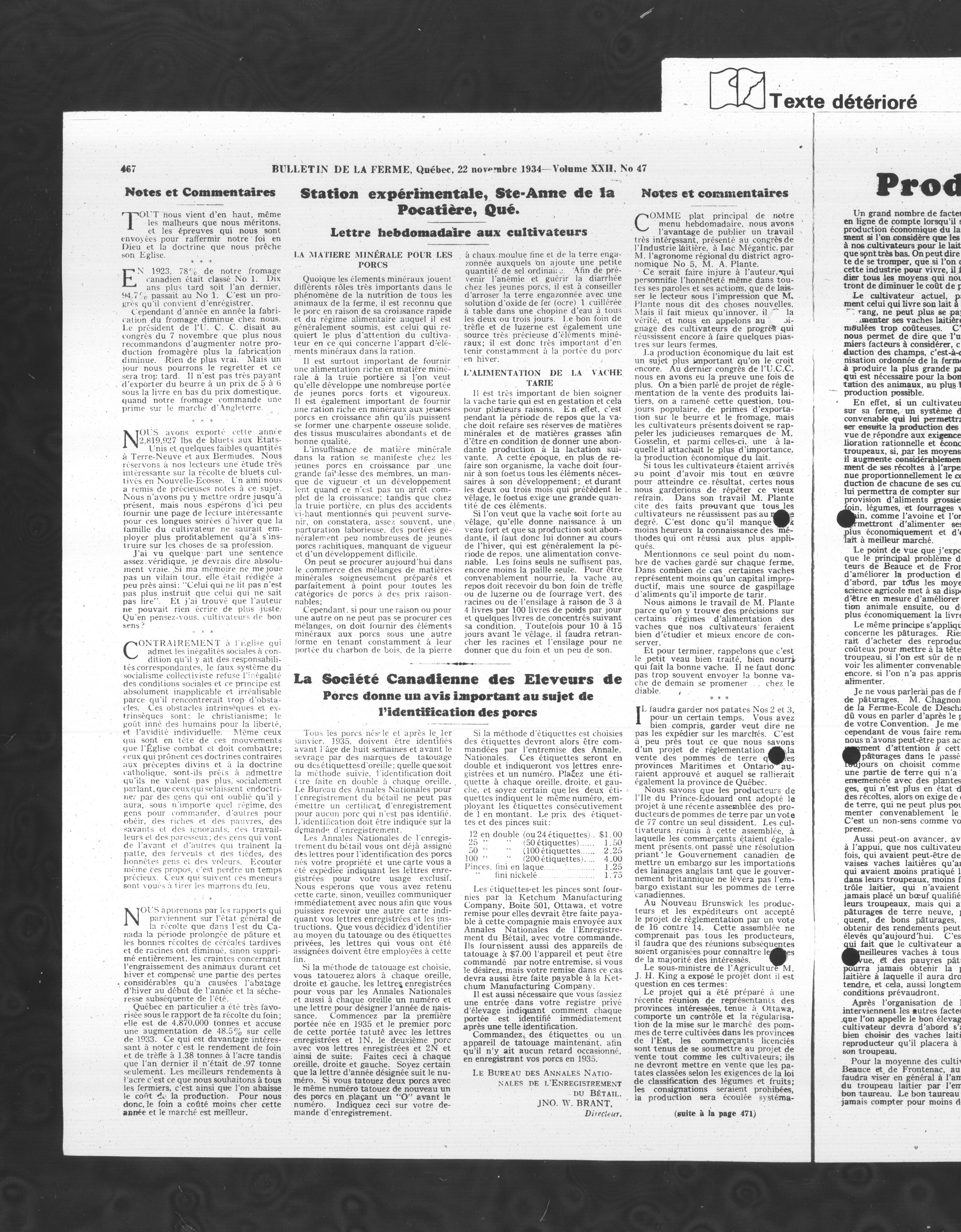 Le Bulletin de la ferme : Le Bulletin de la ferme : Volume XXII, Numéro 47 (22 novembre 1934)