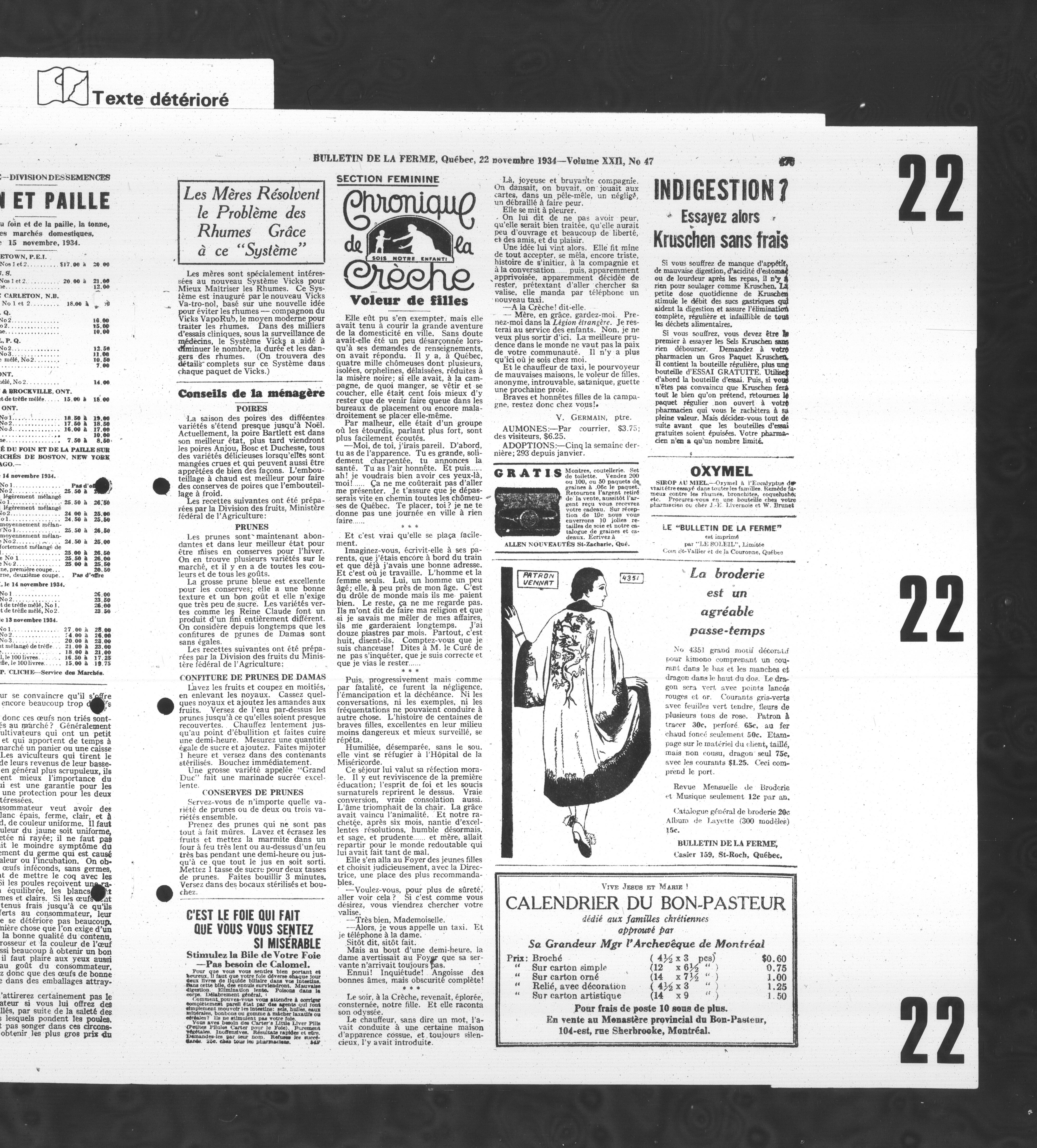 - Le Bulletin de la ferme : Volume XXII, Numéro 47 (22 novembre 1934)