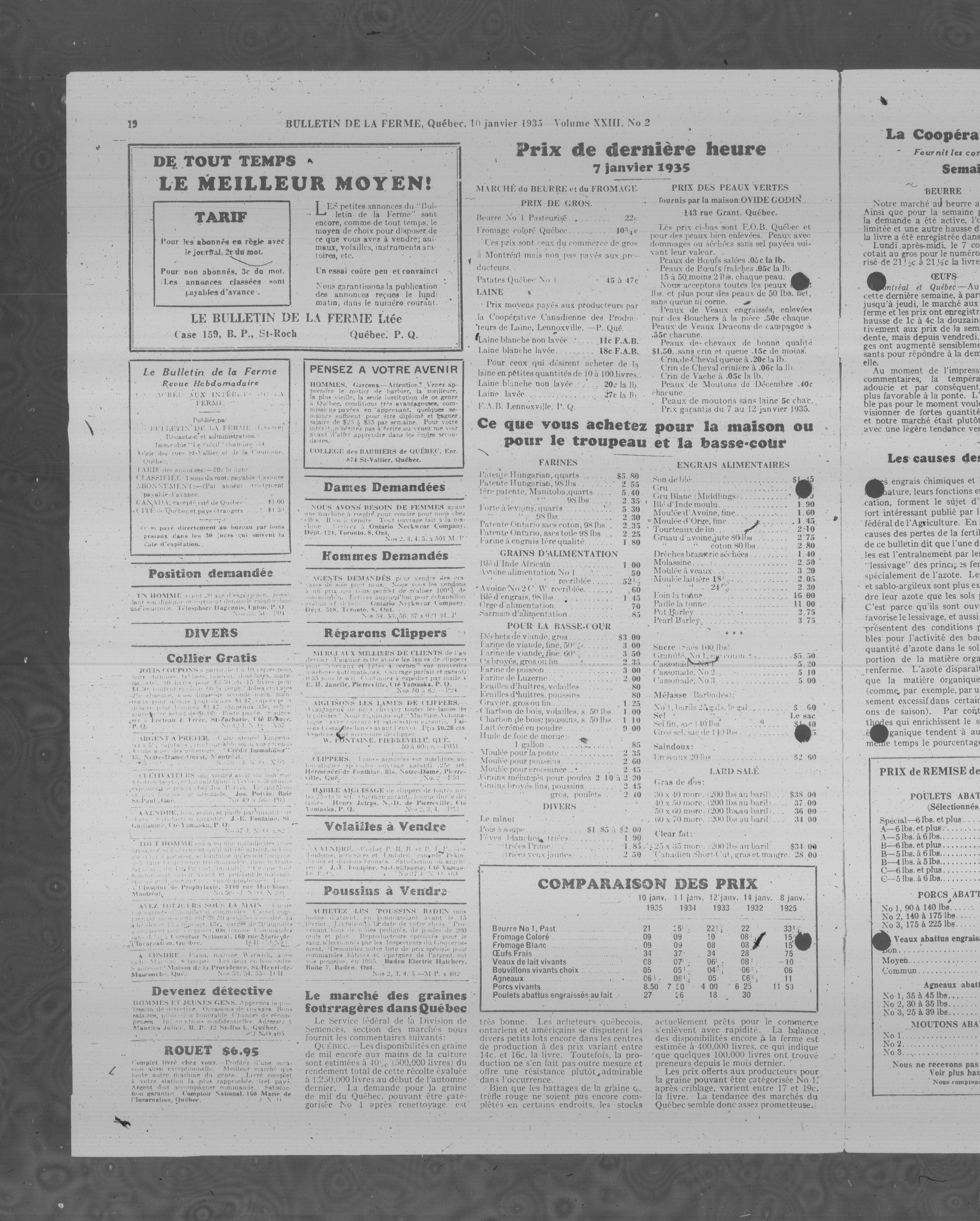 Le Bulletin de la ferme : Le Bulletin de la ferme : Volume XXIII, Numéro 2 (10 janvier 1935)
