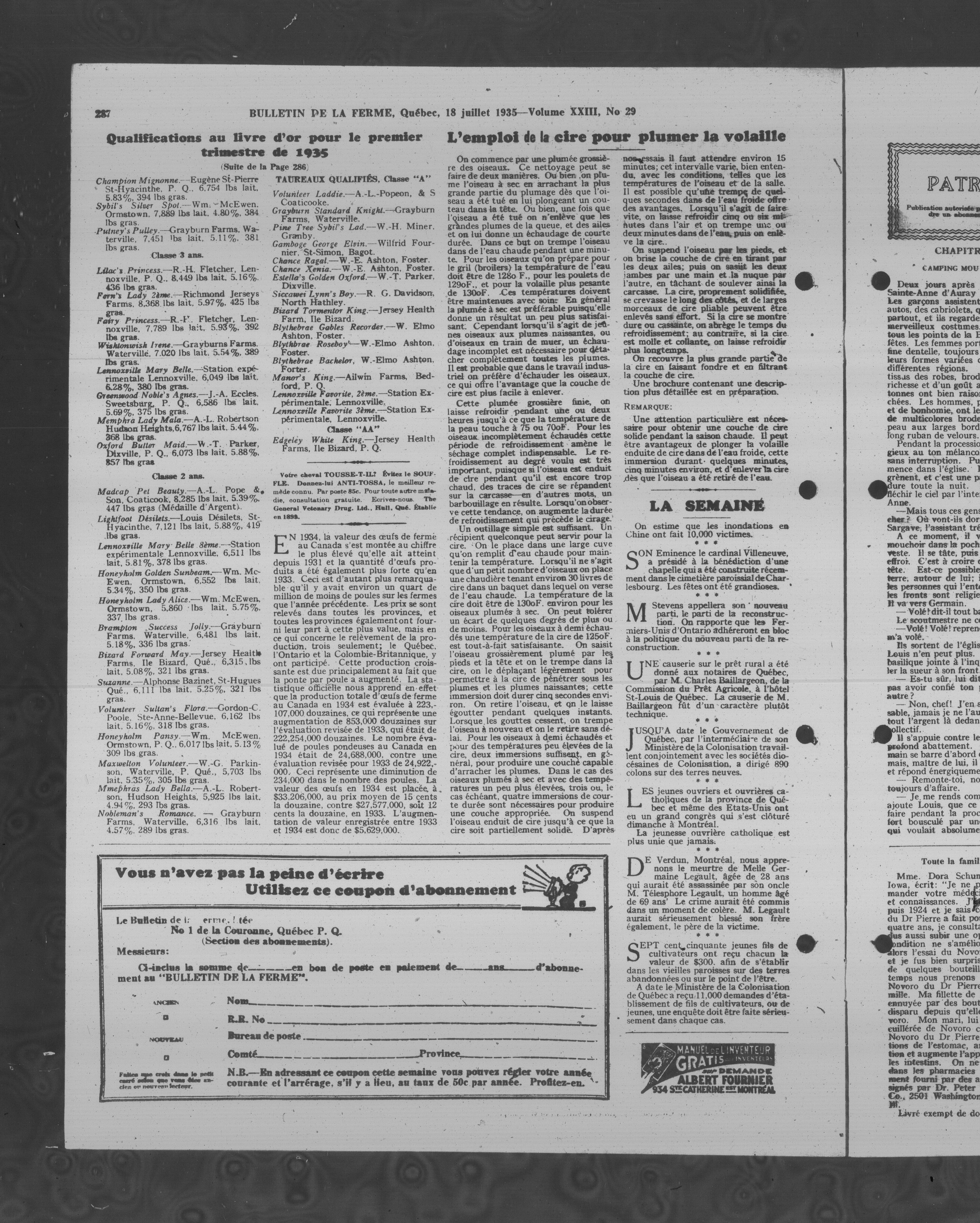 Le Bulletin de la ferme : Le Bulletin de la ferme : Volume XXIII, Numéro 29 (18 juillet 1935)