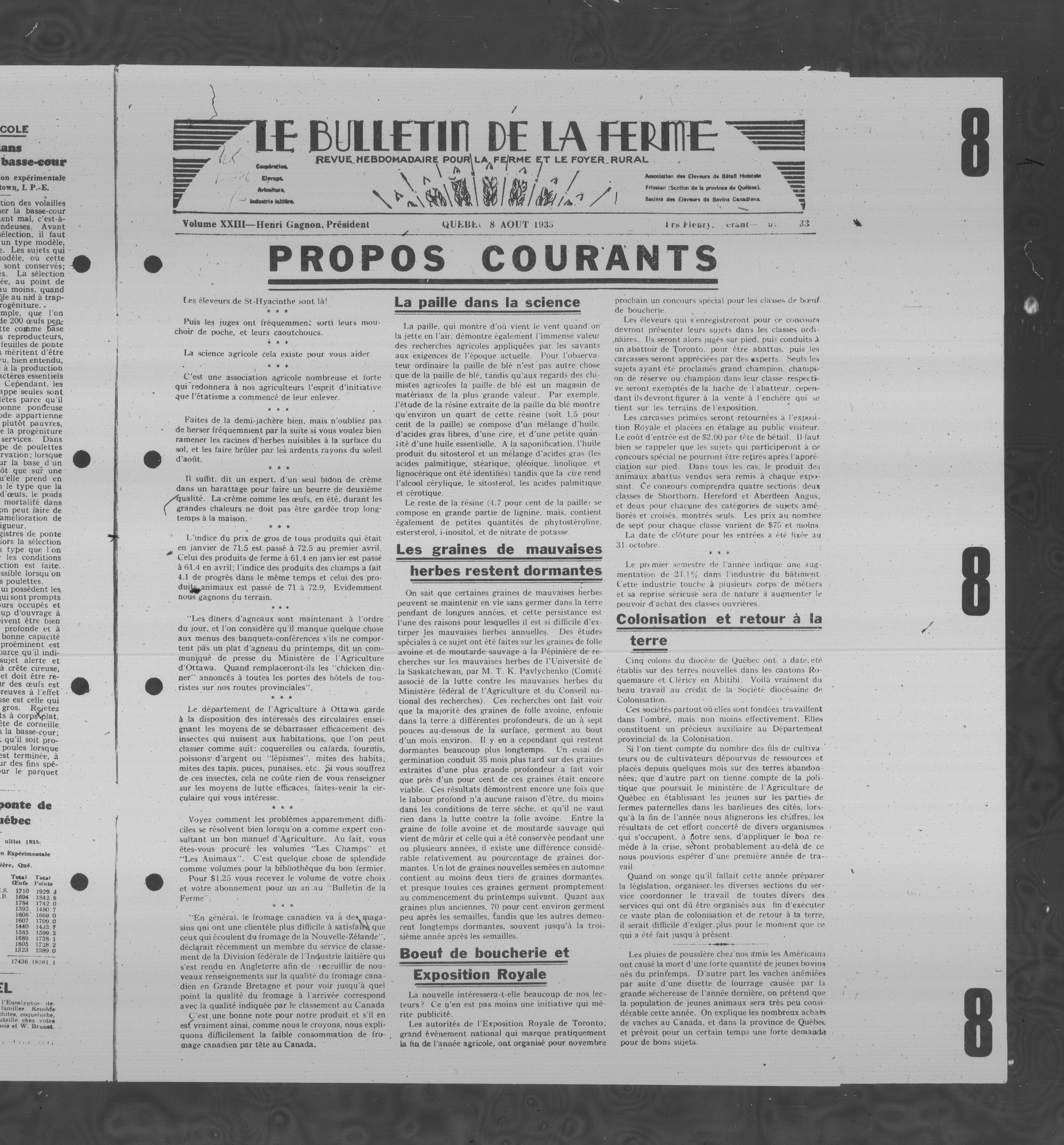 - Le Bulletin de la ferme : Volume XXIII, Numéro 32 (8 août 1935)