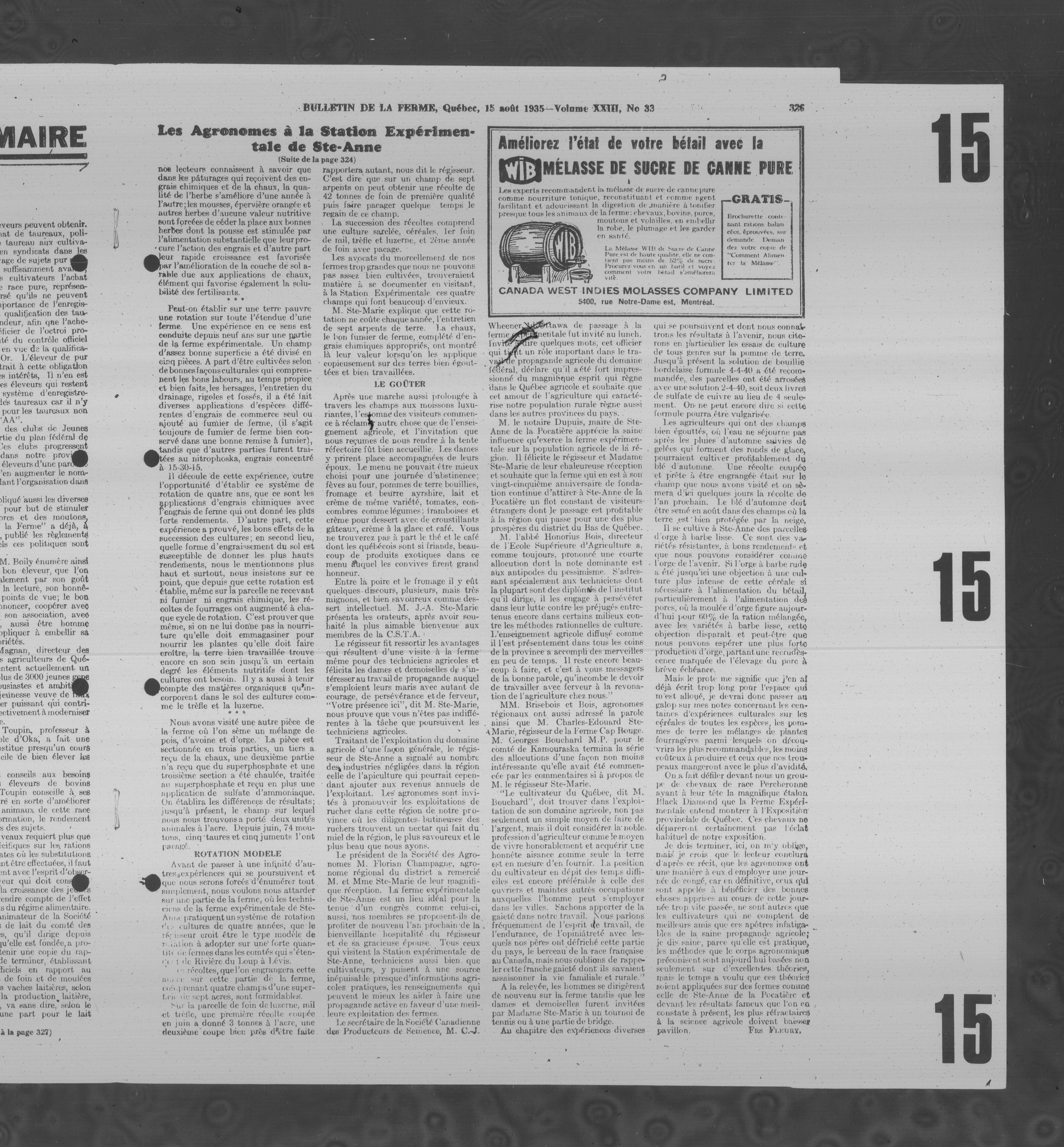 Le Bulletin de la ferme : Volume XXIII, Numéro 33 (15 août 1935)