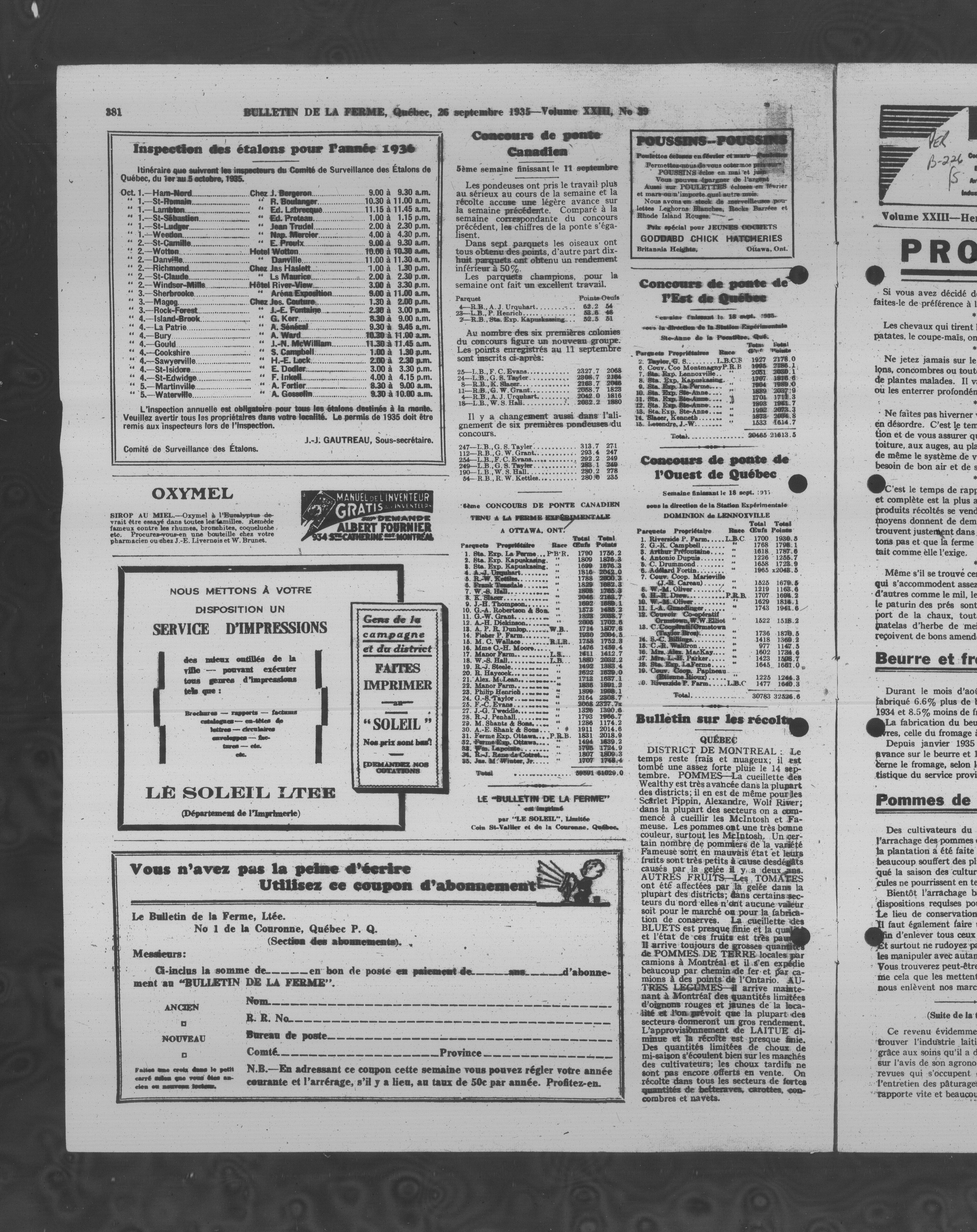 Le Bulletin de la ferme : Le Bulletin de la ferme : Volume XXIII, Numéro 39 (26 septembre 1935)