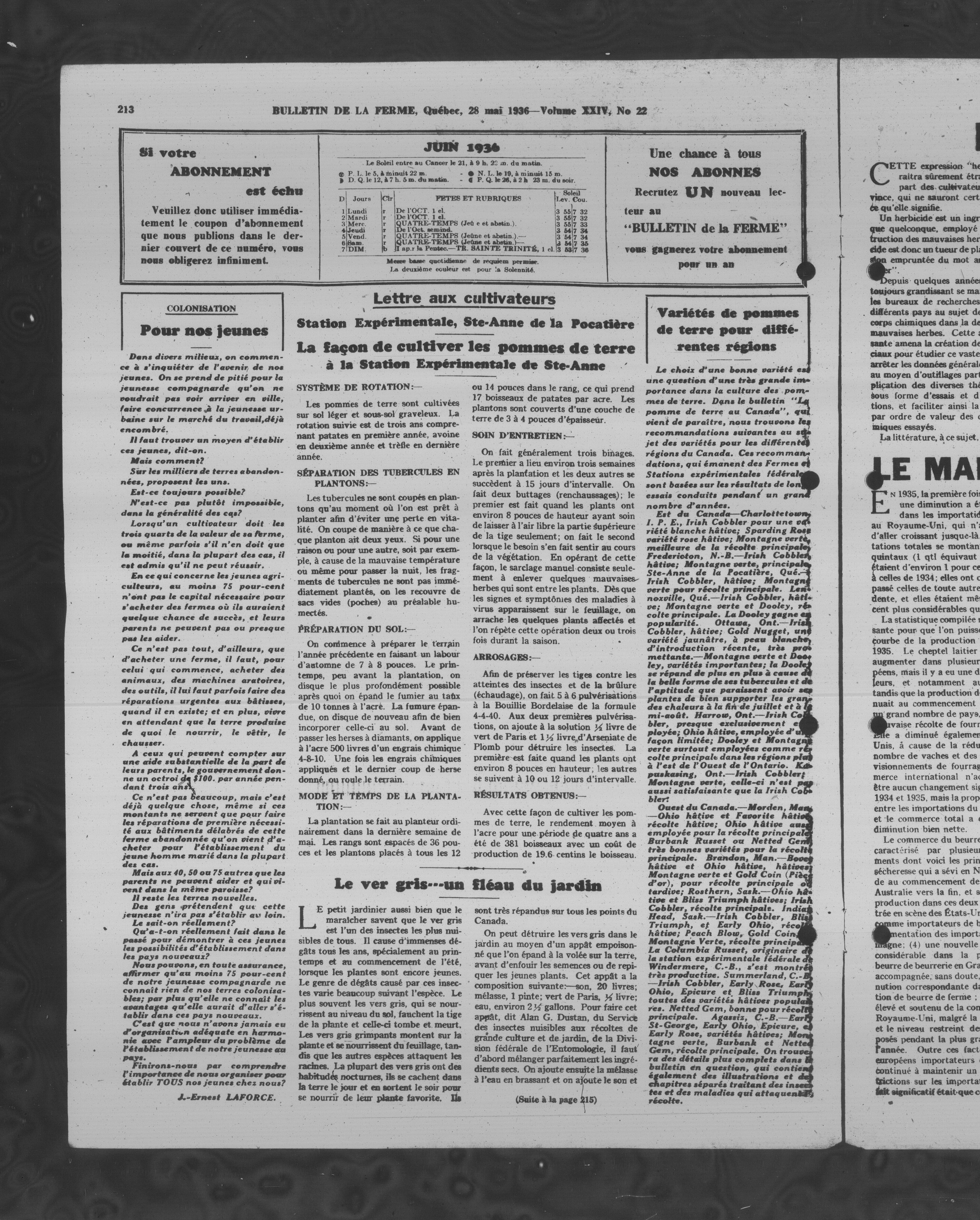 Le Bulletin de la ferme : Volume XXIV, Numéro 22 (28 mai 1936)