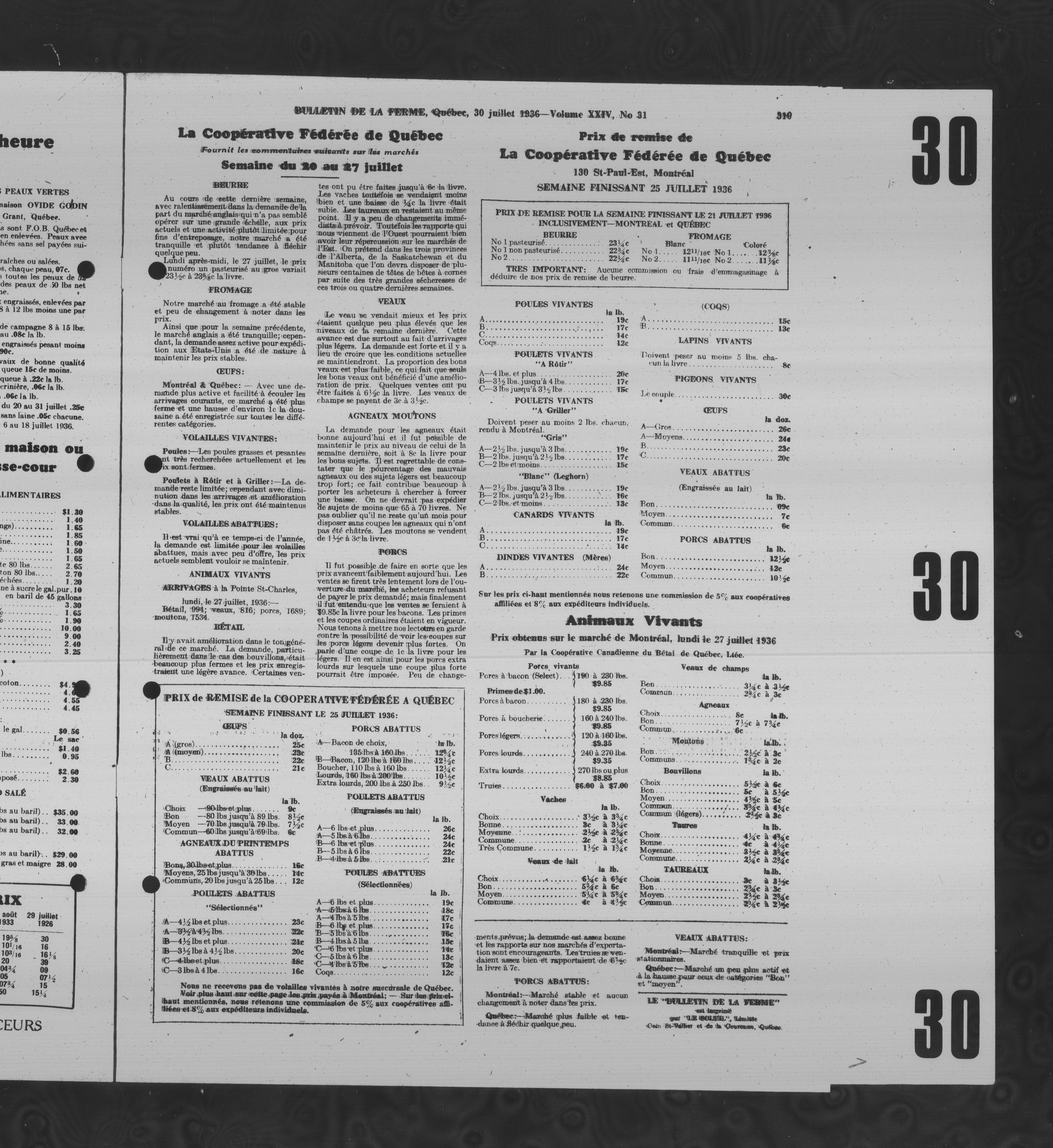 - Le Bulletin de la ferme : Volume XXIV, Numéro 31 (30 juillet 1936)
