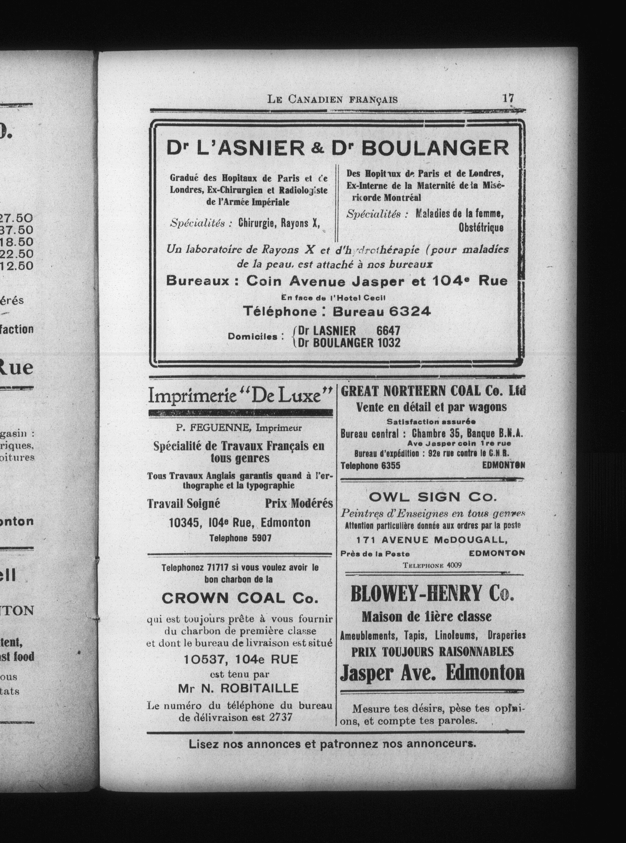 Aide Edmonton : [Société Saint-Jean-Baptiste d'Edmonton], [1917]; 20 images avec recherche en texte intégral