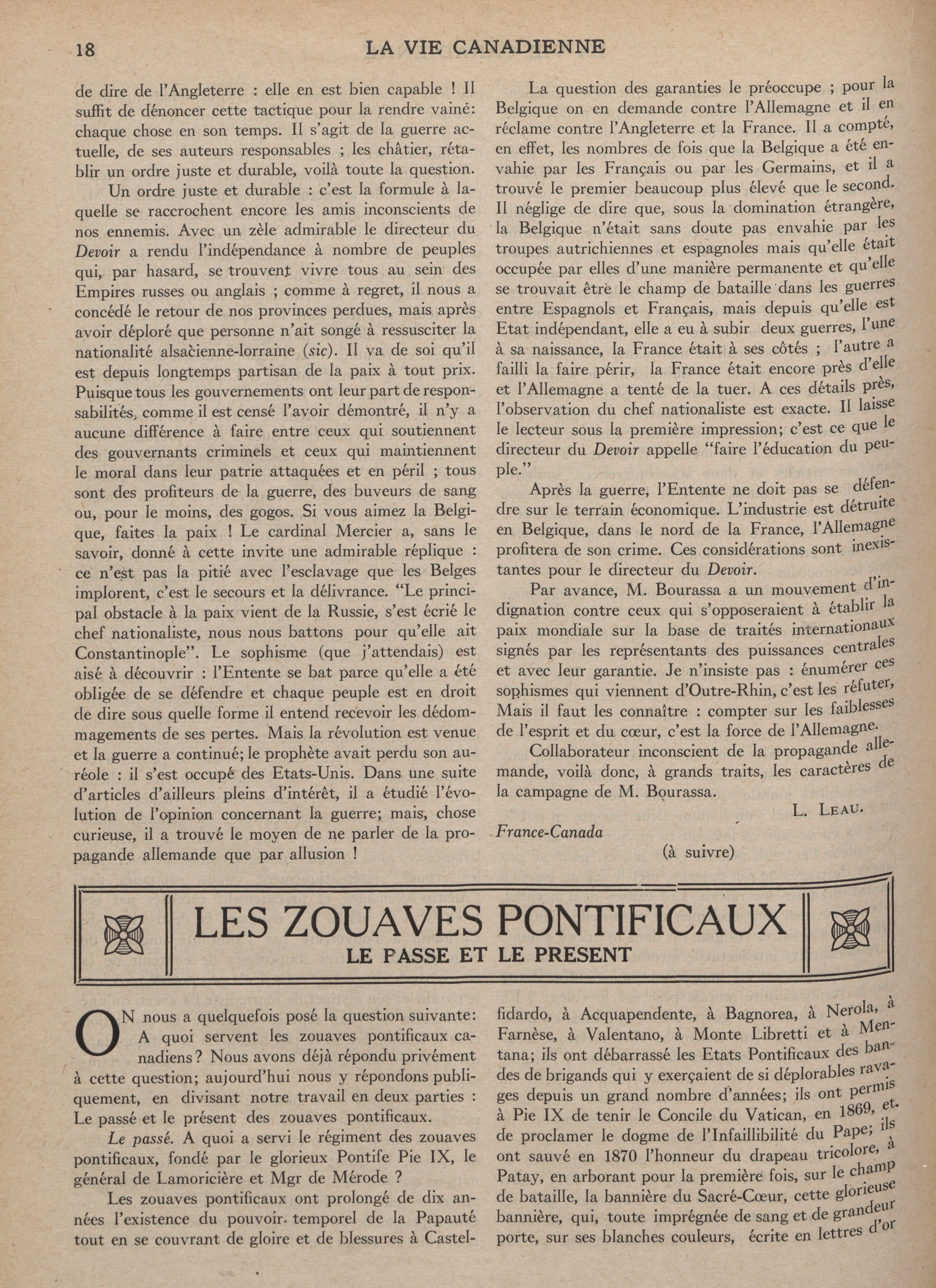 La vie canadienne : T. 1, no 19 (14 nov. 1918)