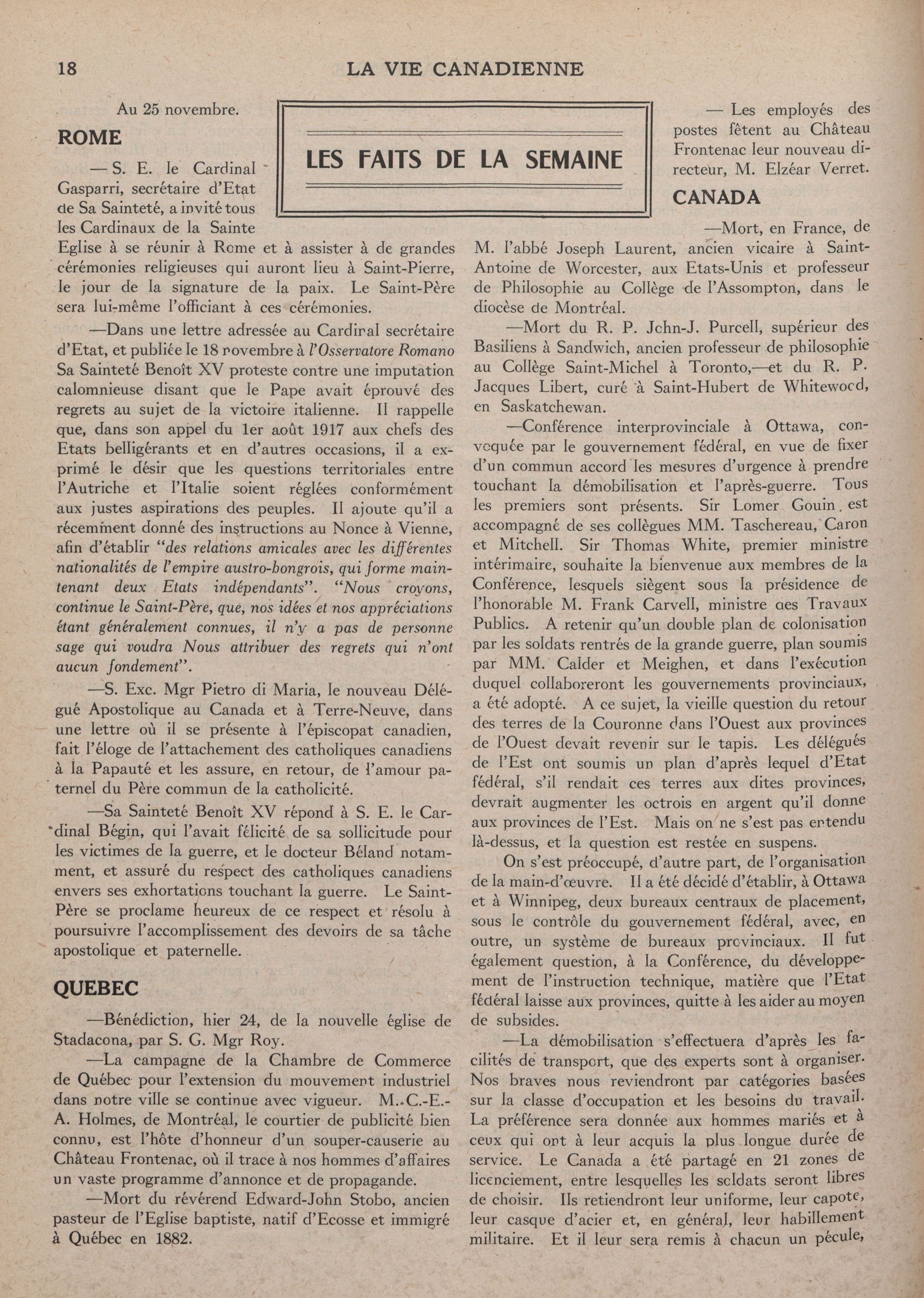 La vie canadienne : T. 1, no 21 (28 nov. 1918)